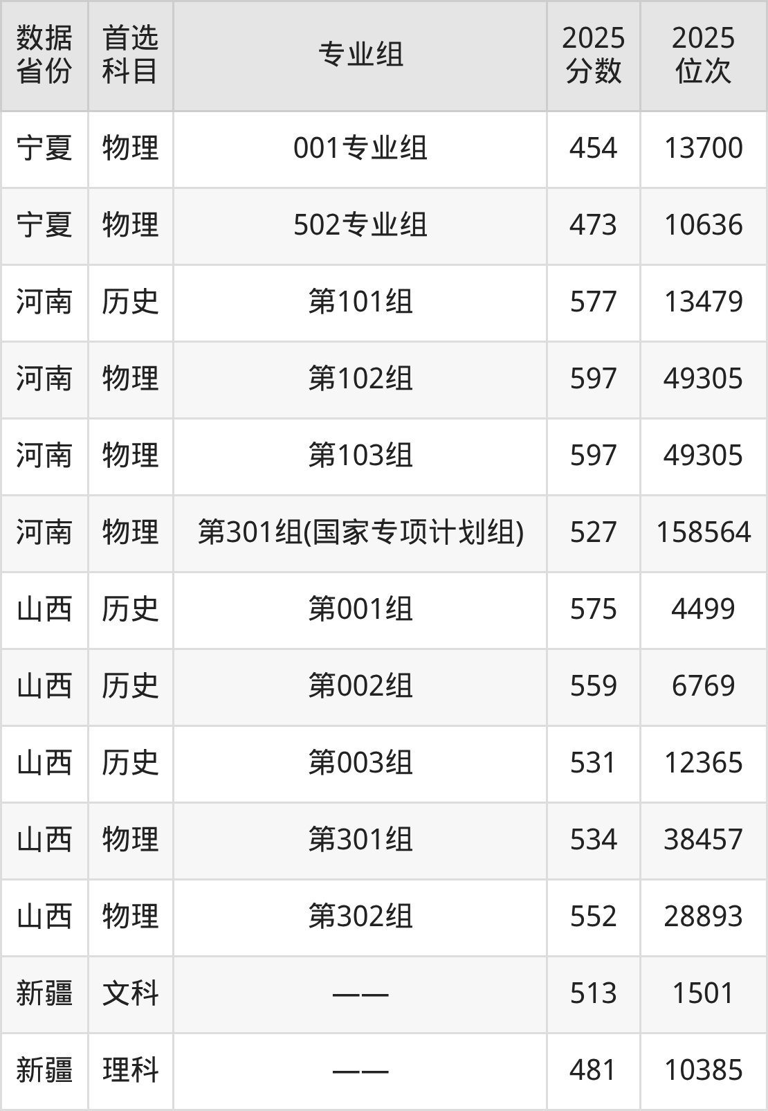 2025年江苏科技大学全国录取分数线最低是454分,最高是597分,平均分在541分左右。在多数地区录取最低分均超过480分。低于480分能上的地区只有上海、甘肃和宁夏,高于平均值较多的是内蒙古、安徽、河南和江西等地,均有专业组最低分在574分及以上。