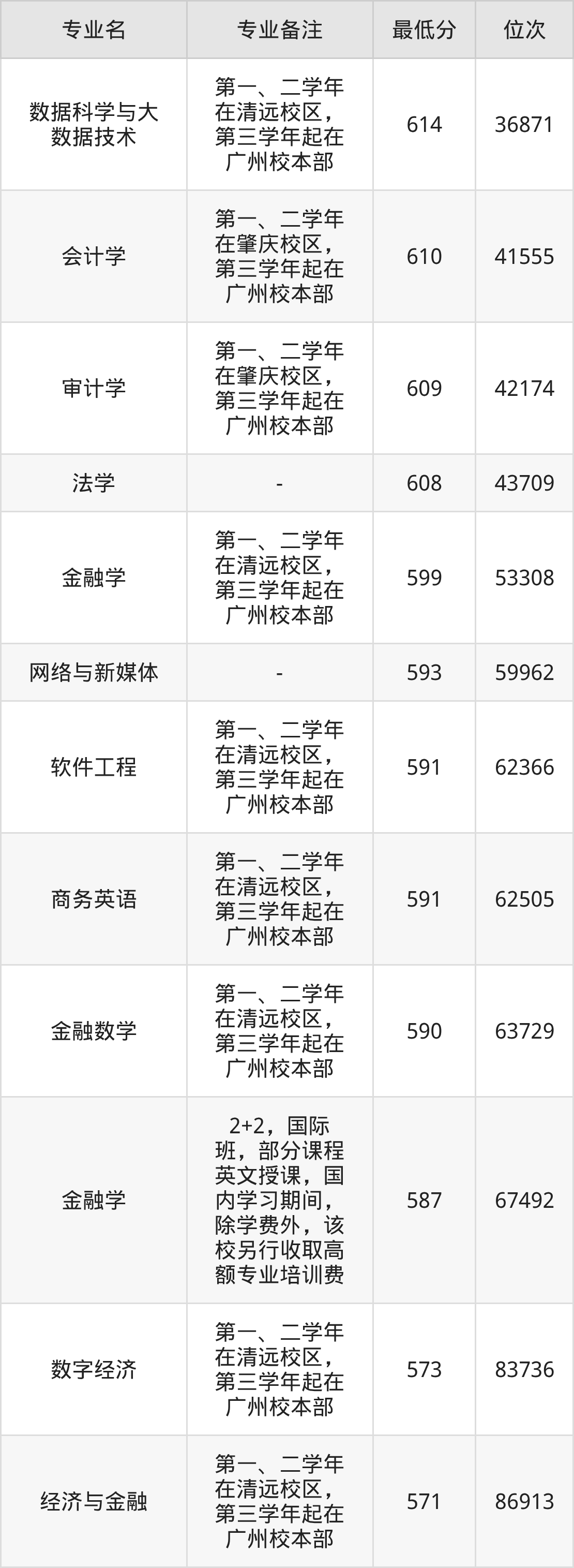 下面是广东金融学院各省最低分汇总,各专业组录取分数线可参考下方图片: