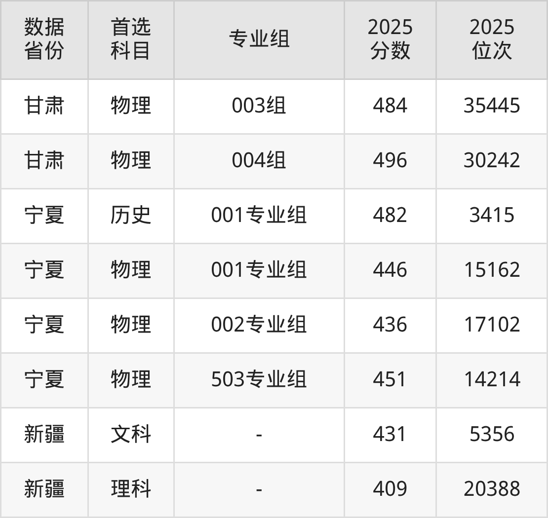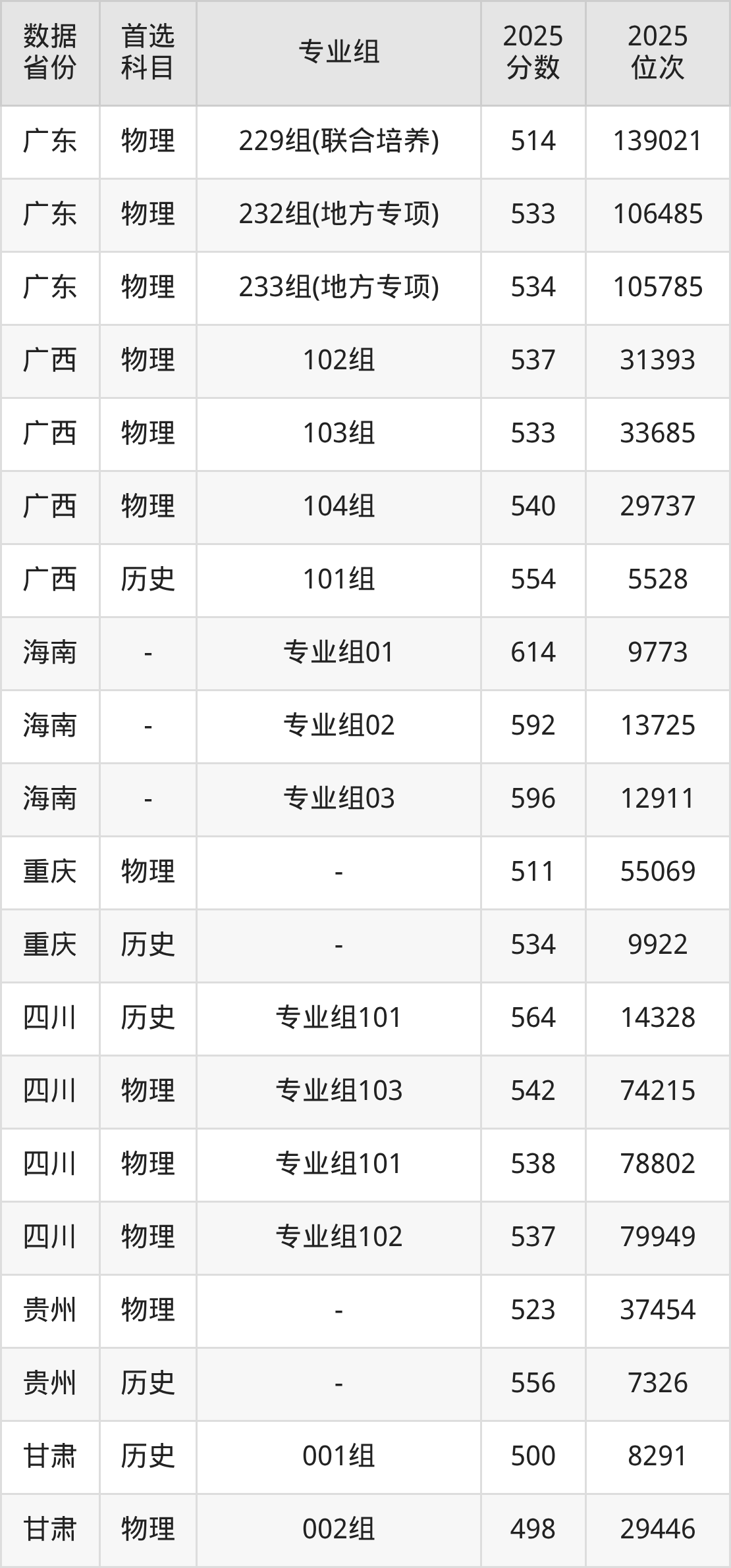 2025年广东金融学院全国录取分数线最低是409分,最高是614分,平均分在534分左右。在多数地区录取最低分均超过440分。低于440分能上的地区只有宁夏和新疆,高于平均值较多的是海南、河北、浙江和江西等地,均有专业组最低分在567分及以上。