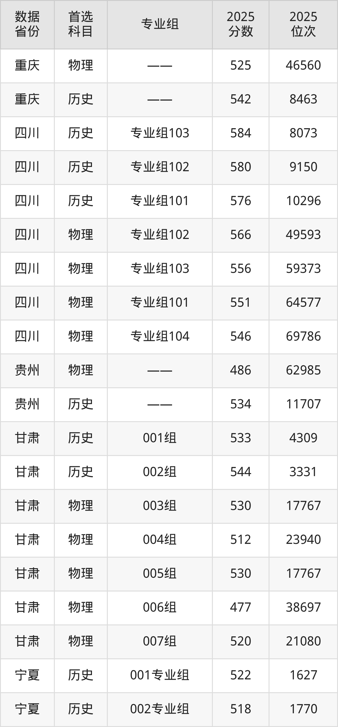 四川:历史组576分、物理组546分;
