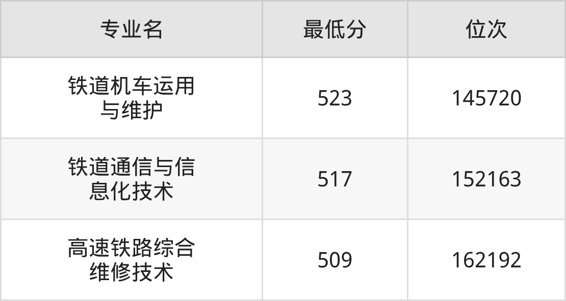 二、郑州铁路职业技术学院各专业最低分