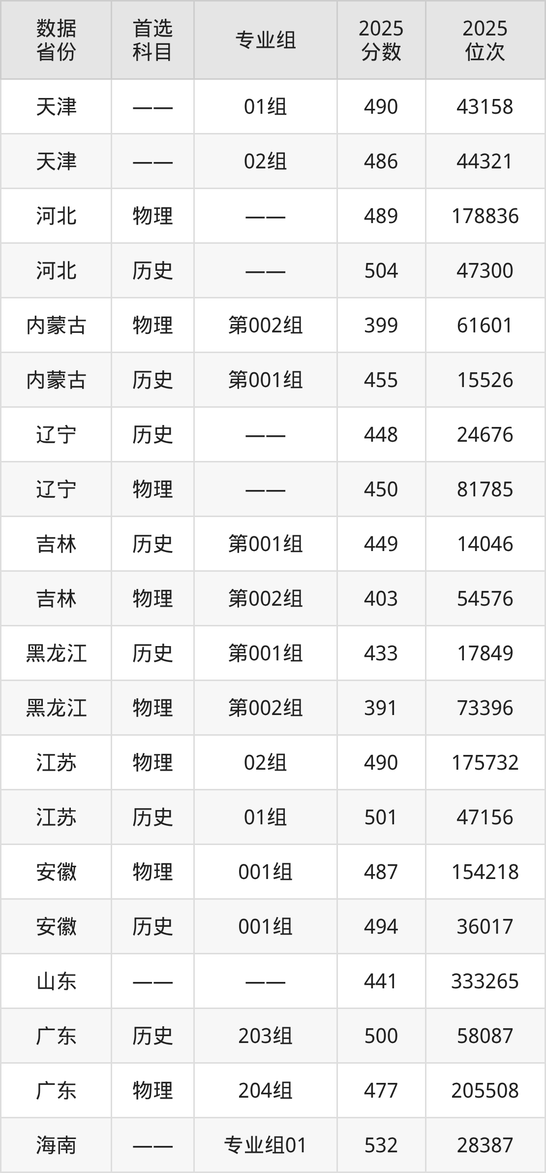 下面是烟台理工学院各省最低分汇总,各专业组录取分数线可参考下方图片: