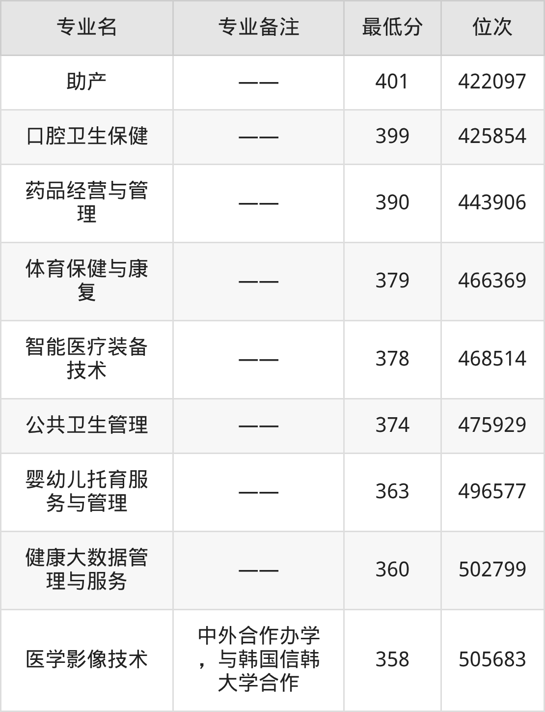 3、公共卫生管理(高职3+2贯通培养)(衔接山东女子学院健康服务与管理专业):475分、位次247801名;