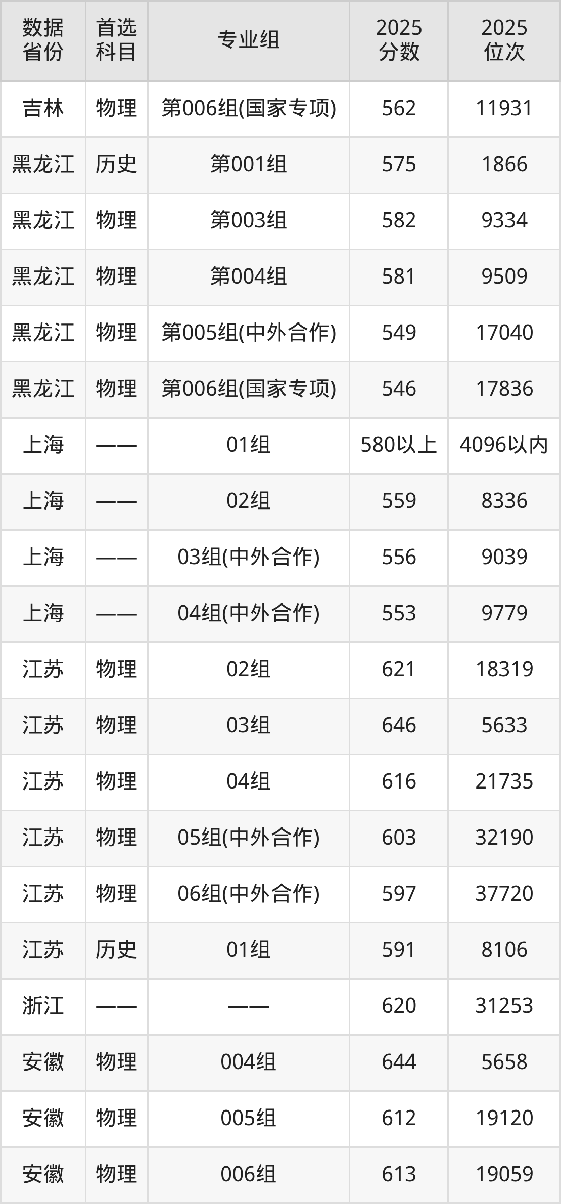 吉林:历史组576分、物理组549分;