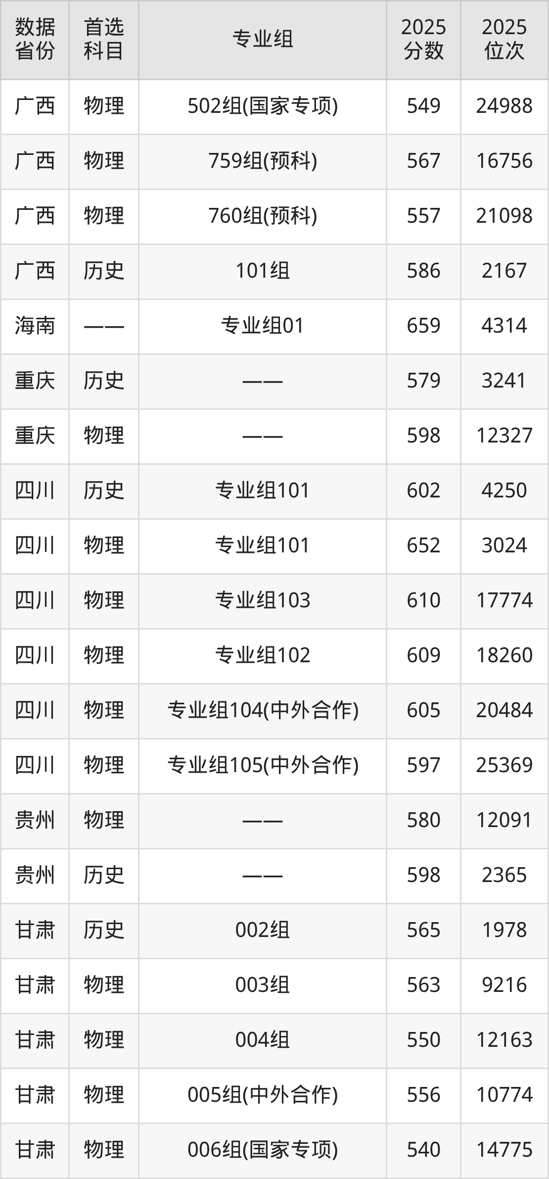 四川:历史组602分、物理组597分;