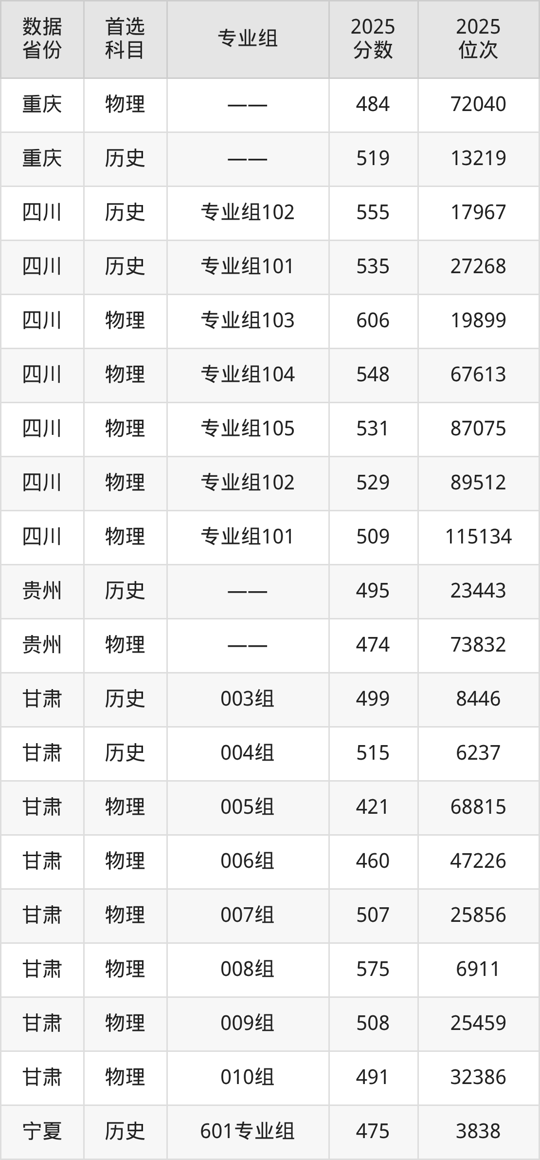 甘肃:历史组499分、物理组421分;