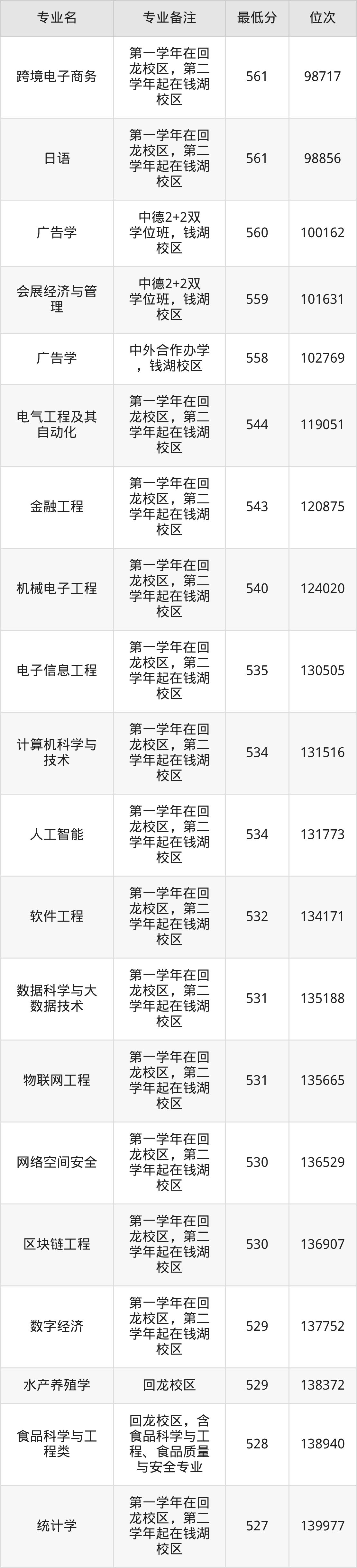 10、会展经济与管理(第一学年在回龙校区,第二学年起在钱湖校区):565分、位次94271名。