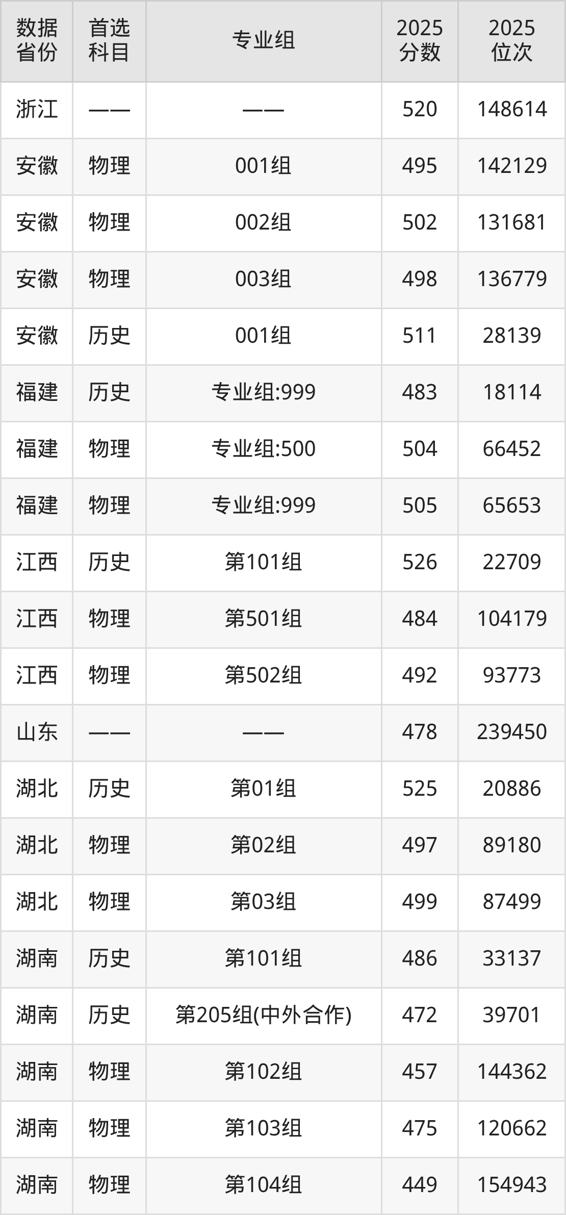 下面是浙江万里学院各省最低分汇总,各专业组录取分数线可参考下方图片: