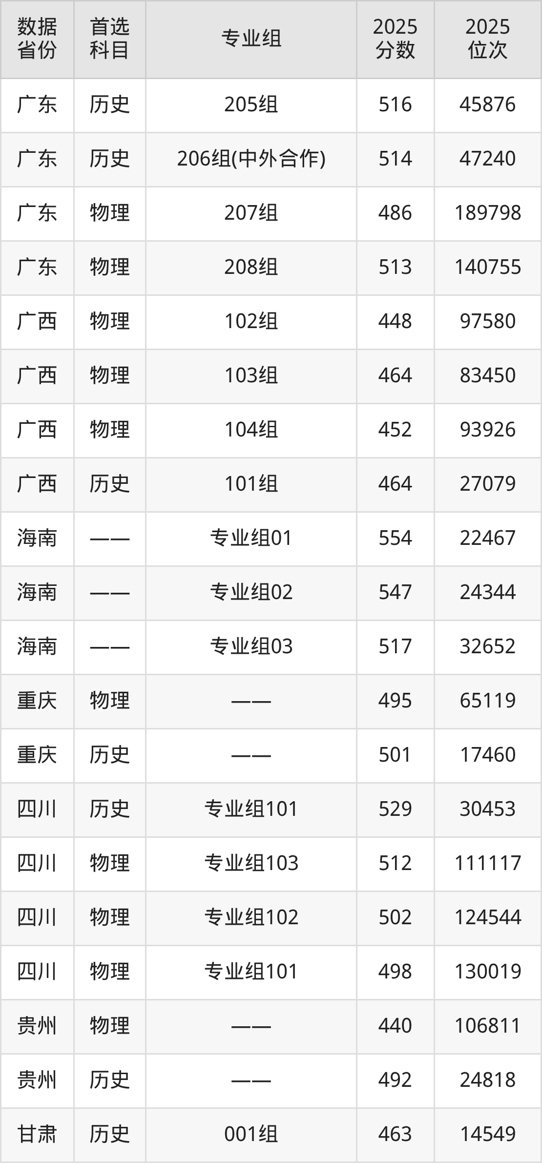 2025年浙江万里学院全国录取分数线最低是372分,最高是554分,平均分在489分左右。在多数地区录取最低分均超过440分。低于440分能上的地区只有新疆,高于平均值较多的是四川、江西、湖北和河南等地,均有专业组最低分在523分及以上。