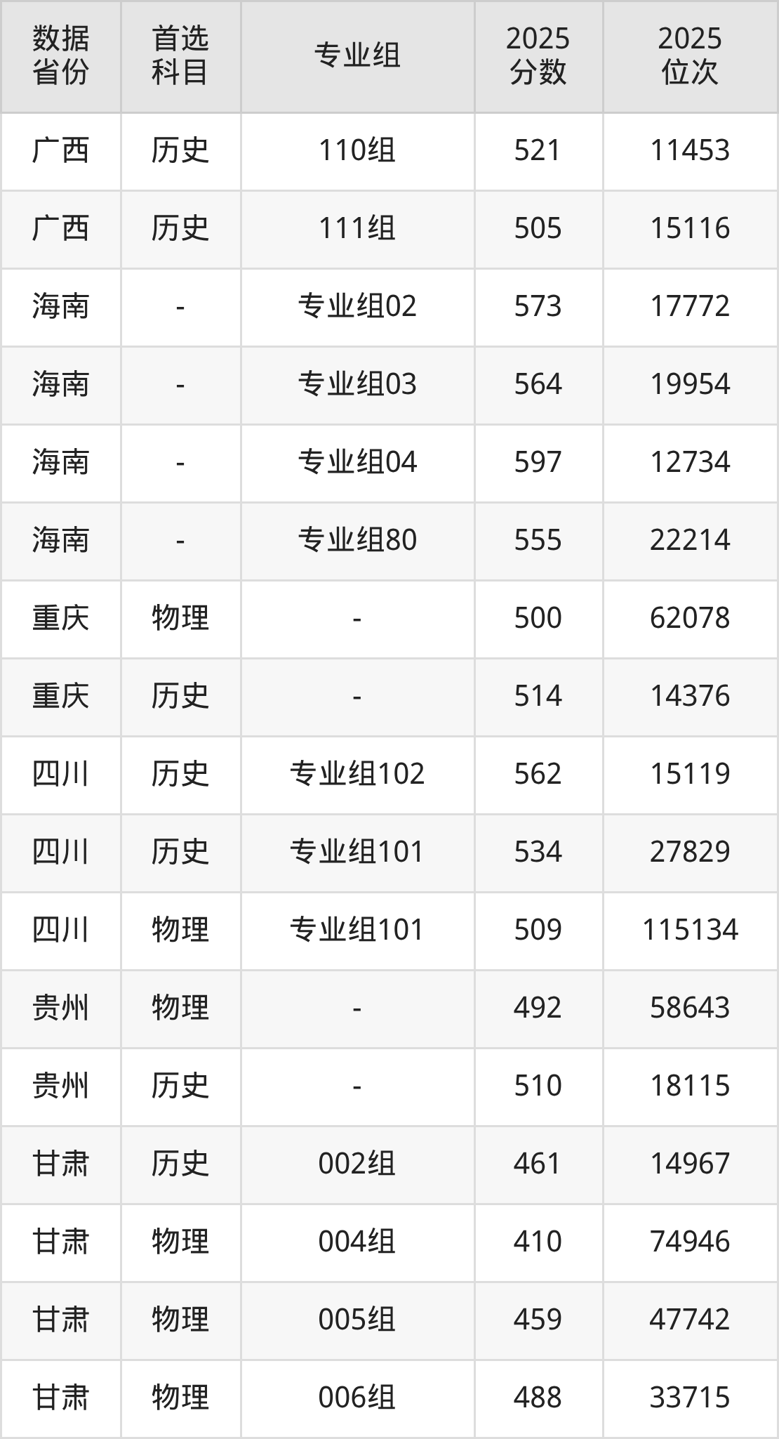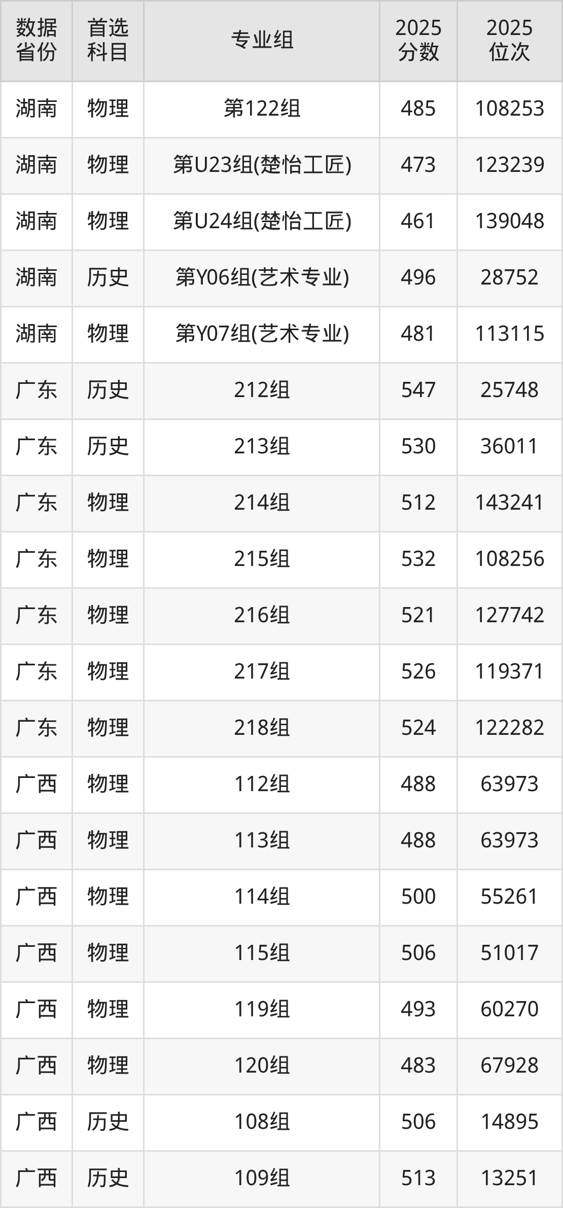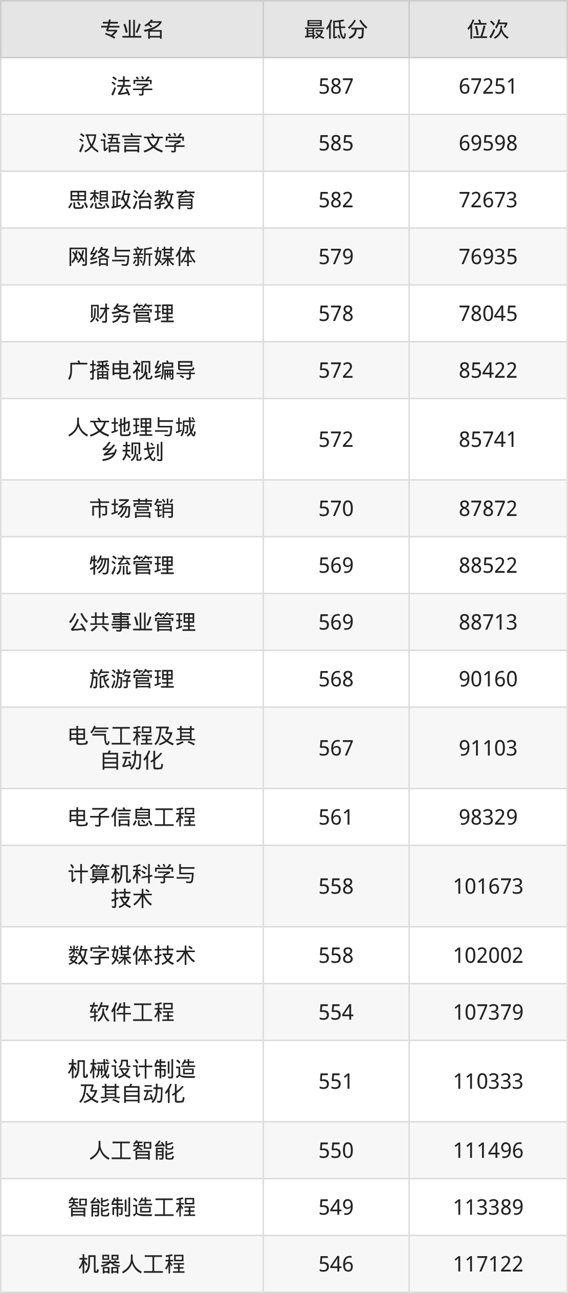 下面是长沙学院各省最低分汇总,各专业组录取分数线可参考下方图片: