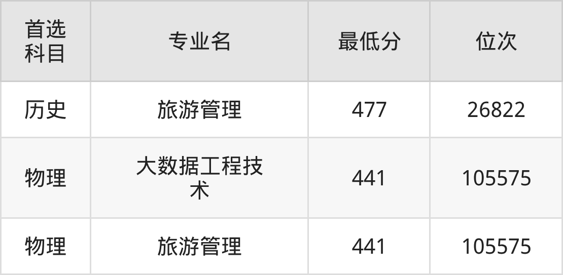 2、大数据工程技术:441分(物理类)、位次105575名;