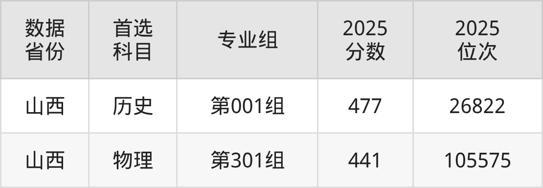 2025年山西文化旅游职业大学全国录取分数线是441分到477分之间,其中在山西省录取最低分:历史组477分、物理组441分。参考山西招录数据,各专业分数线是:旅游管理477分(历史类)、大数据工程技术441分(物理类)、旅游管理441分(物理类)等。