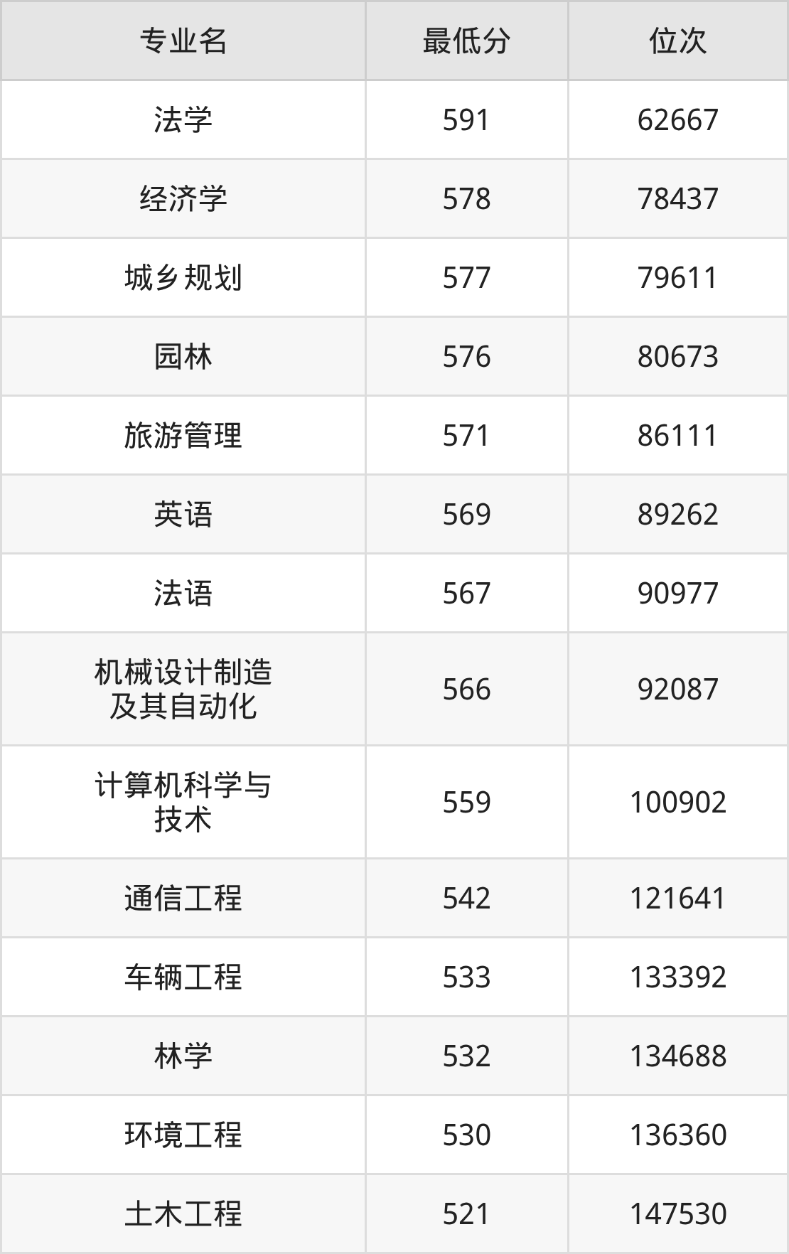 1、法学:591分、位次62667名;