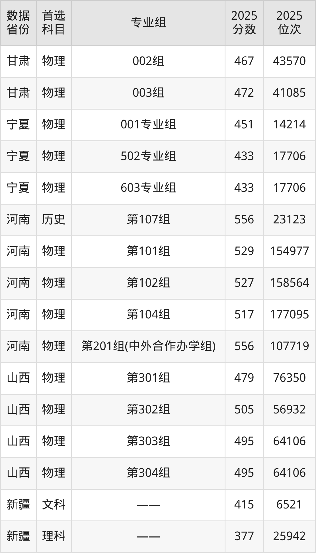 新疆:文科415分、理科377分。