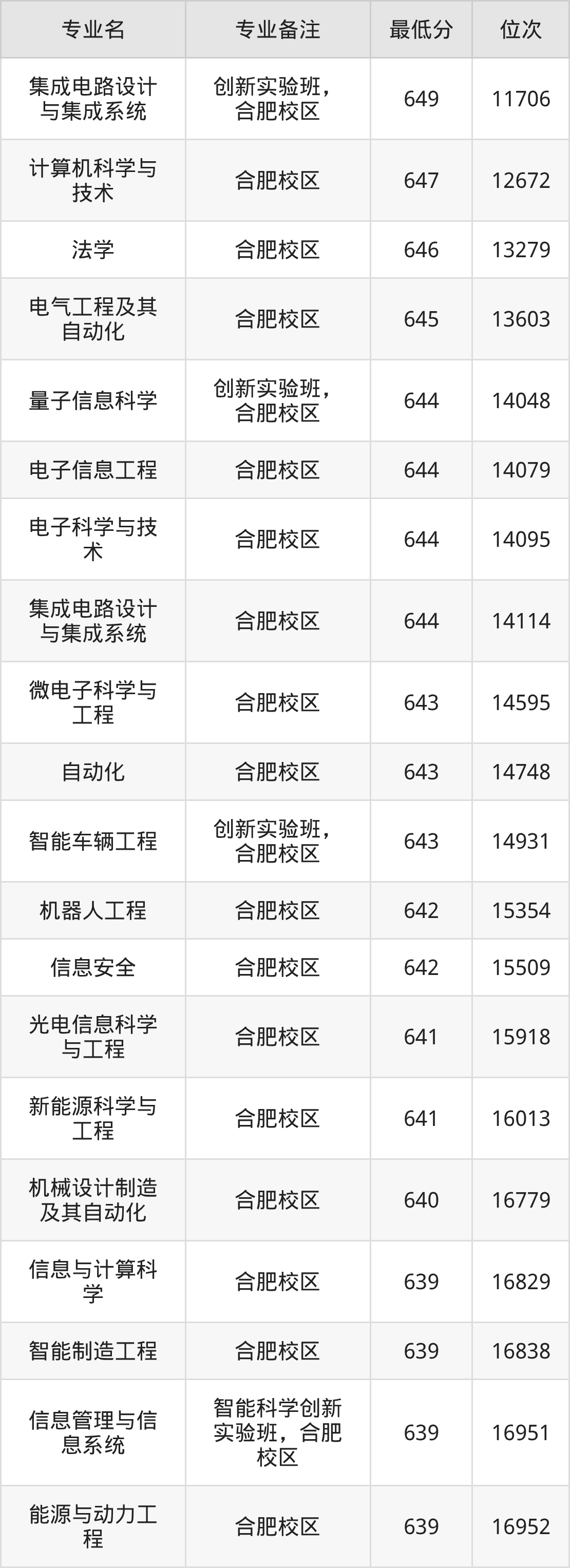 1、集成电路设计与集成系统(创新实验班):649分、位次11706名;