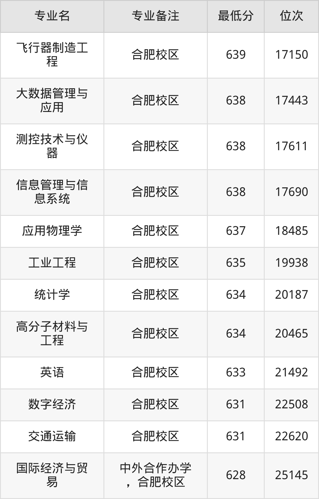 二、合肥工业大学各专业最低分