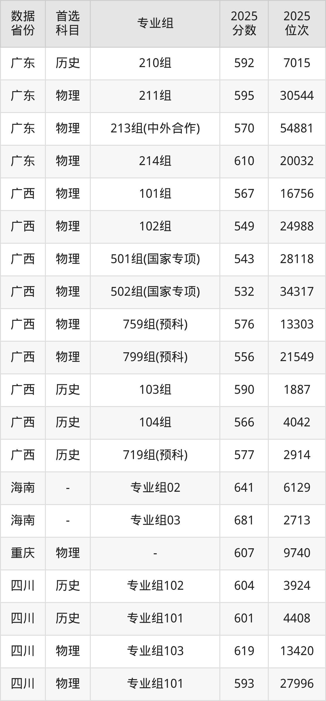 下面是合肥工业大学各省最低分汇总,各专业组录取分数线可参考下方图片: