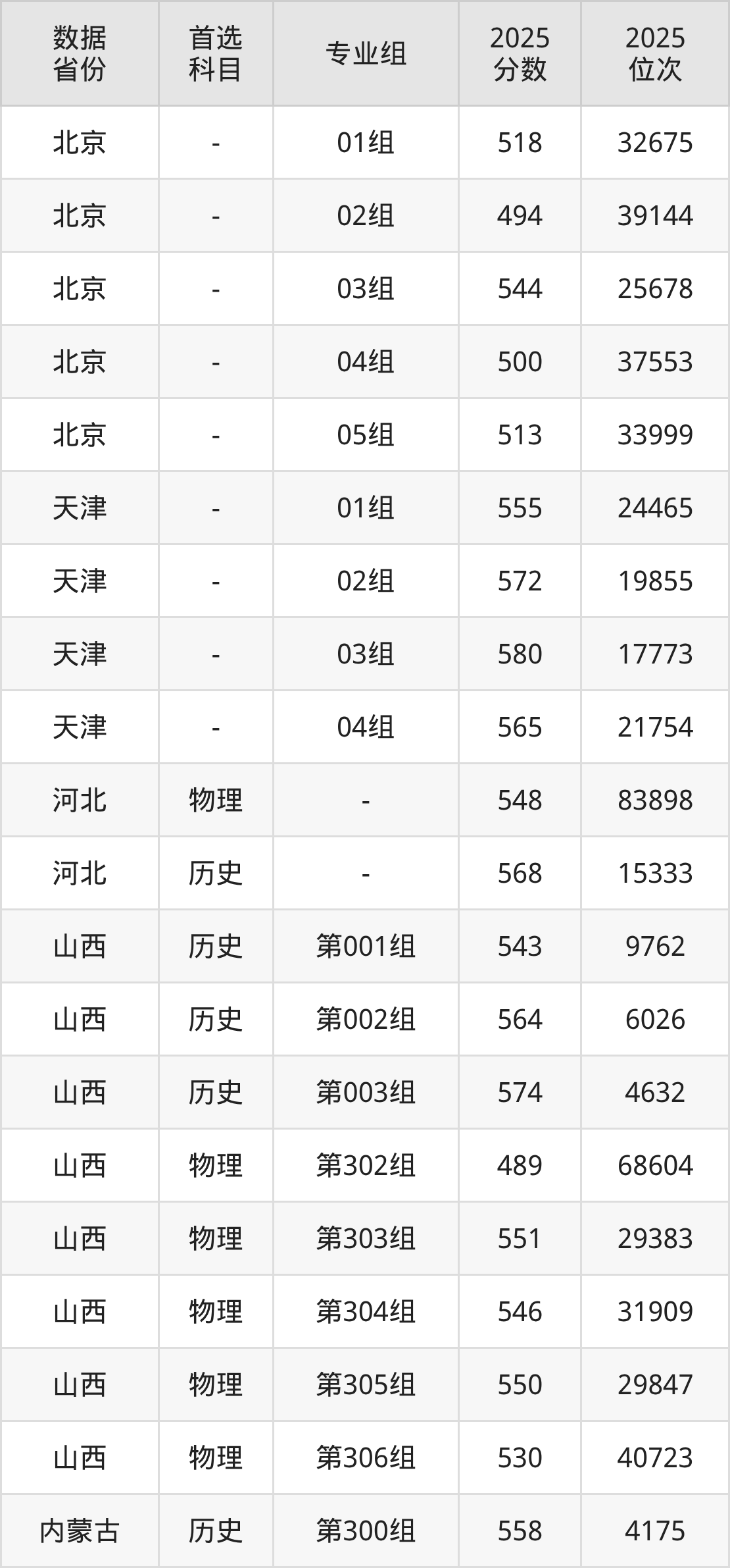 下面是中国民用航空飞行学院各省最低分汇总,各专业组录取分数线可参考下方图片: