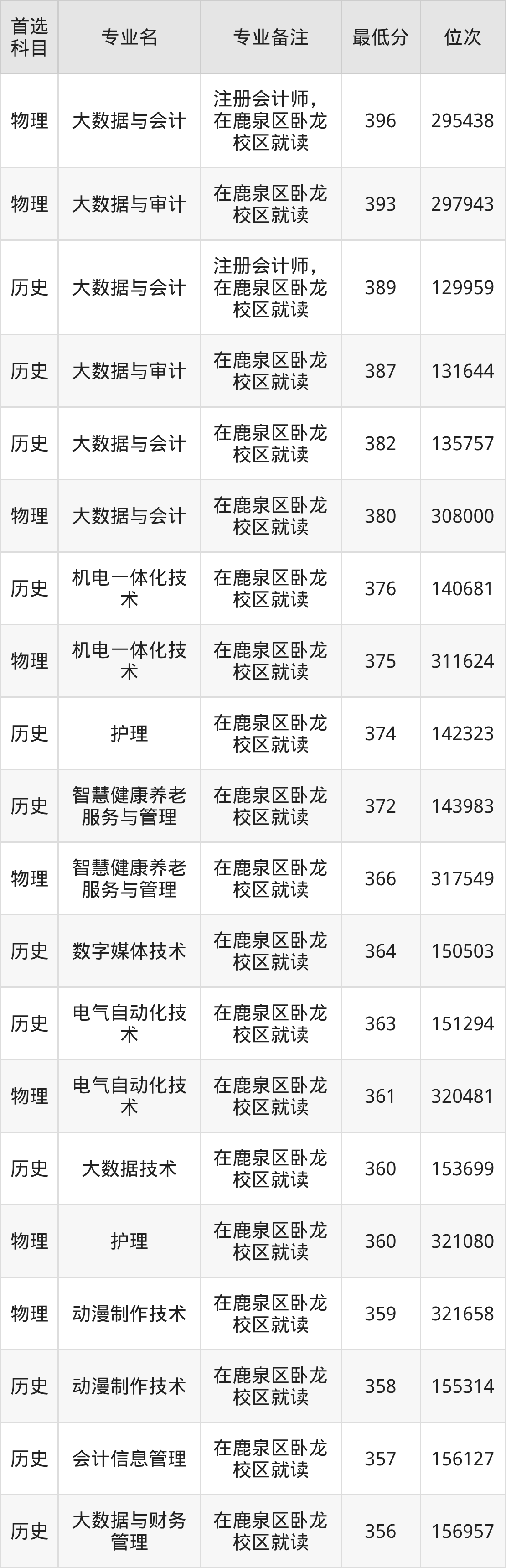 6、大数据与会计(在鹿泉区卧龙校区就读):380分(物理类)、位次308000名;