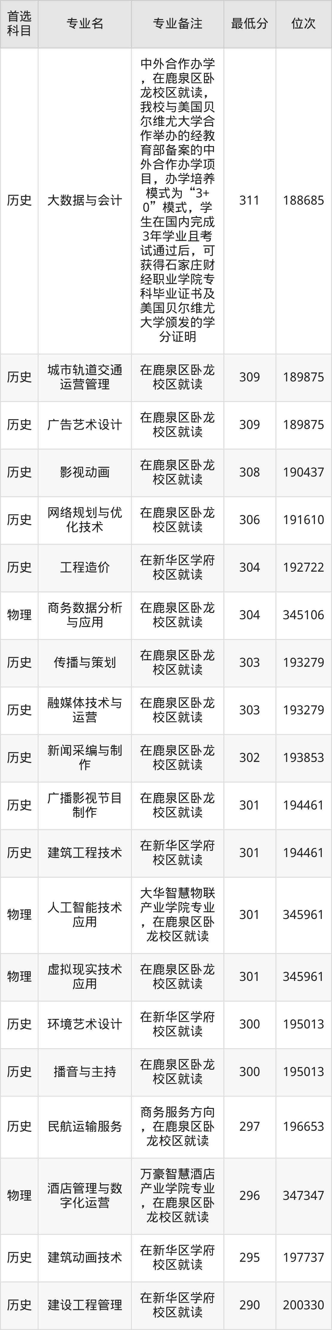 下面是石家庄财经职业学院各省最低分汇总,各专业组录取分数线可参考下方图片: