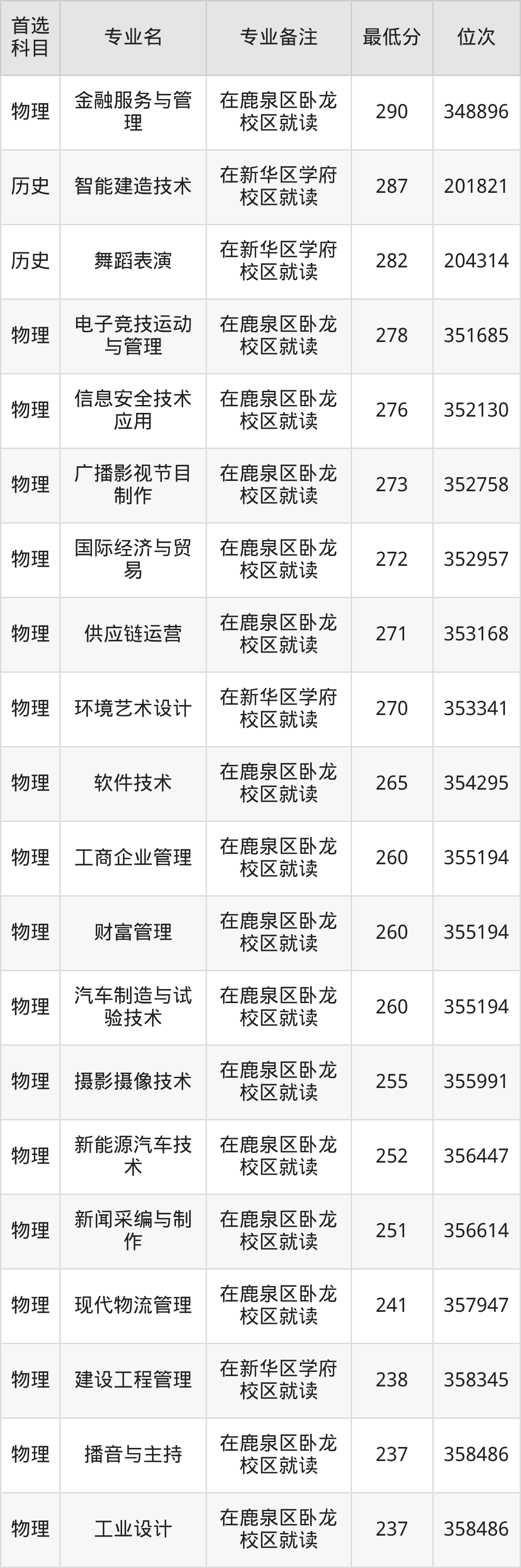 | 物理 | 智能建造技术 | 在新华区学府 校区就读 | 75 |