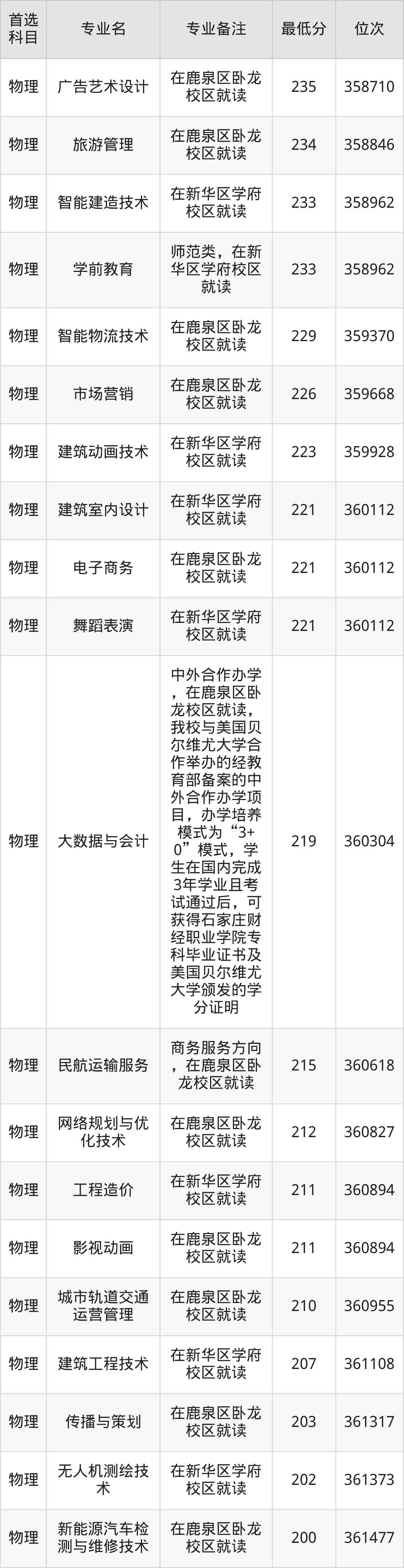 | 物理 | 金融服务与管 理 | 在鹿泉区卧龙 校区就读 | 10 |