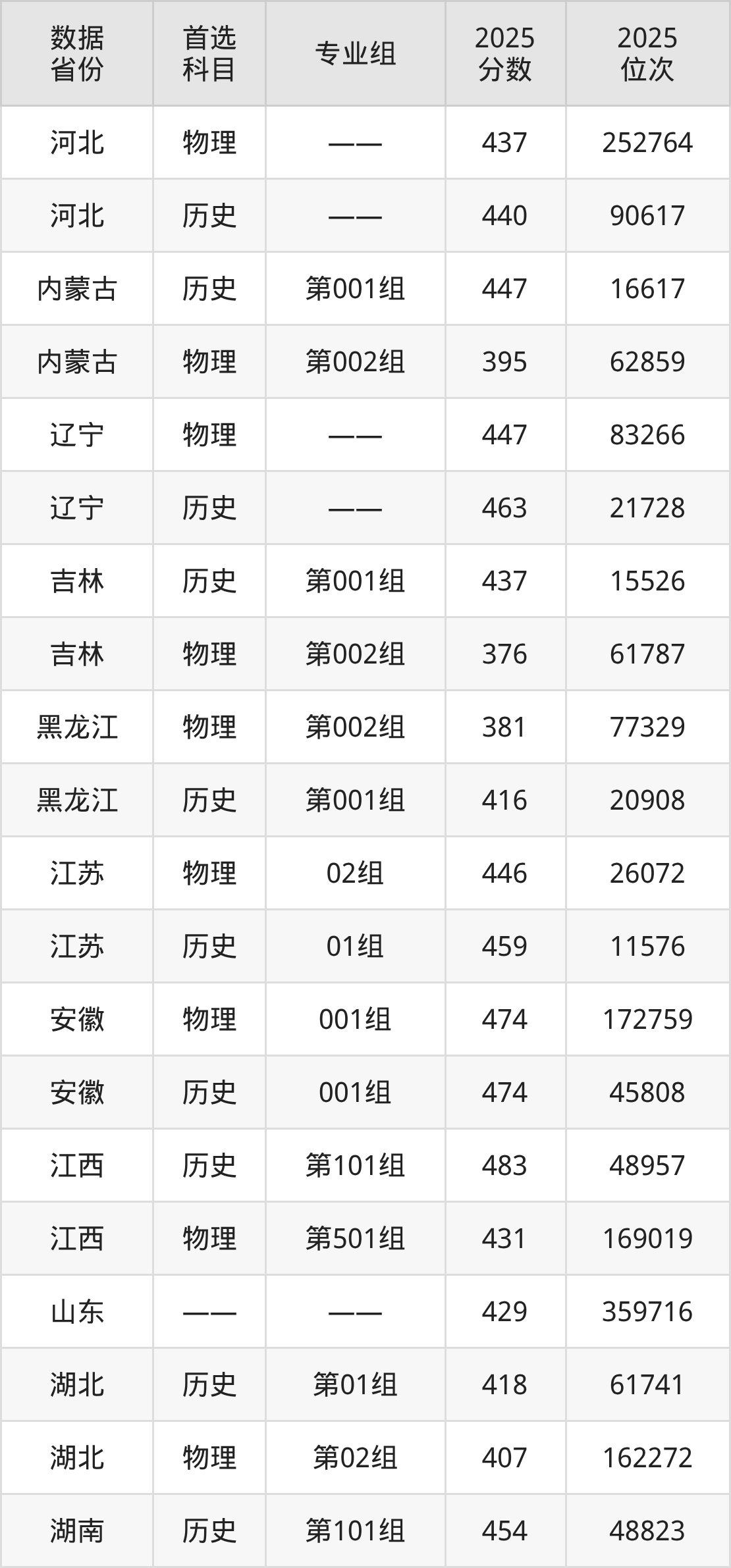 吉林:历史组437分、物理组376分;