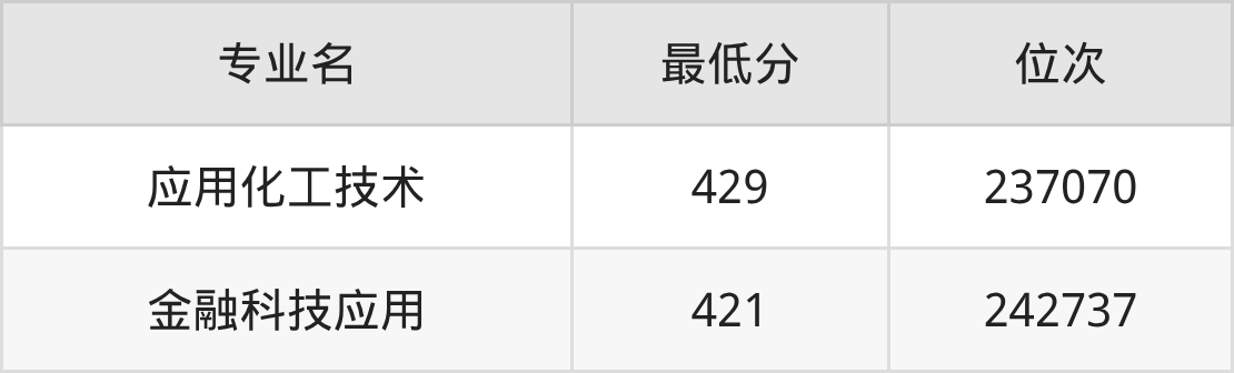 下面是山东化工职业学院各省最低分汇总,各专业组录取分数线可参考下方图片: