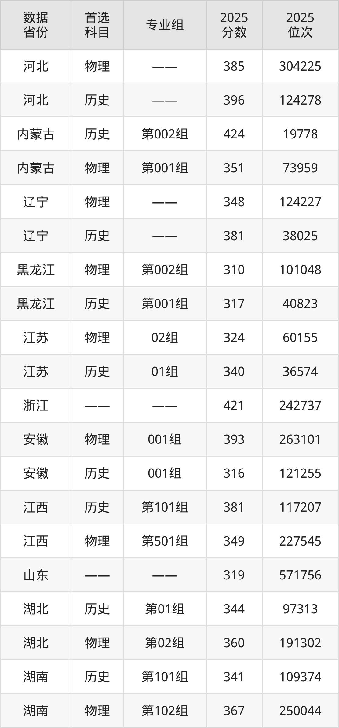 2025年山东化工职业学院全国录取分数线最低是305分,最高是424分,平均分在356分左右。在多数地区录取最低分均超过320分。低于320分能上的地区只有山东、黑龙江和安徽和贵州,高于平均值较多的是内蒙古、浙江、河北和安徽等地,均有专业组最低分在393分及以上。