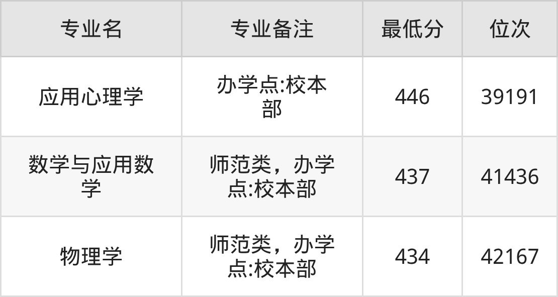 1、应用心理学(办学点:校本部):446分、位次39191名;