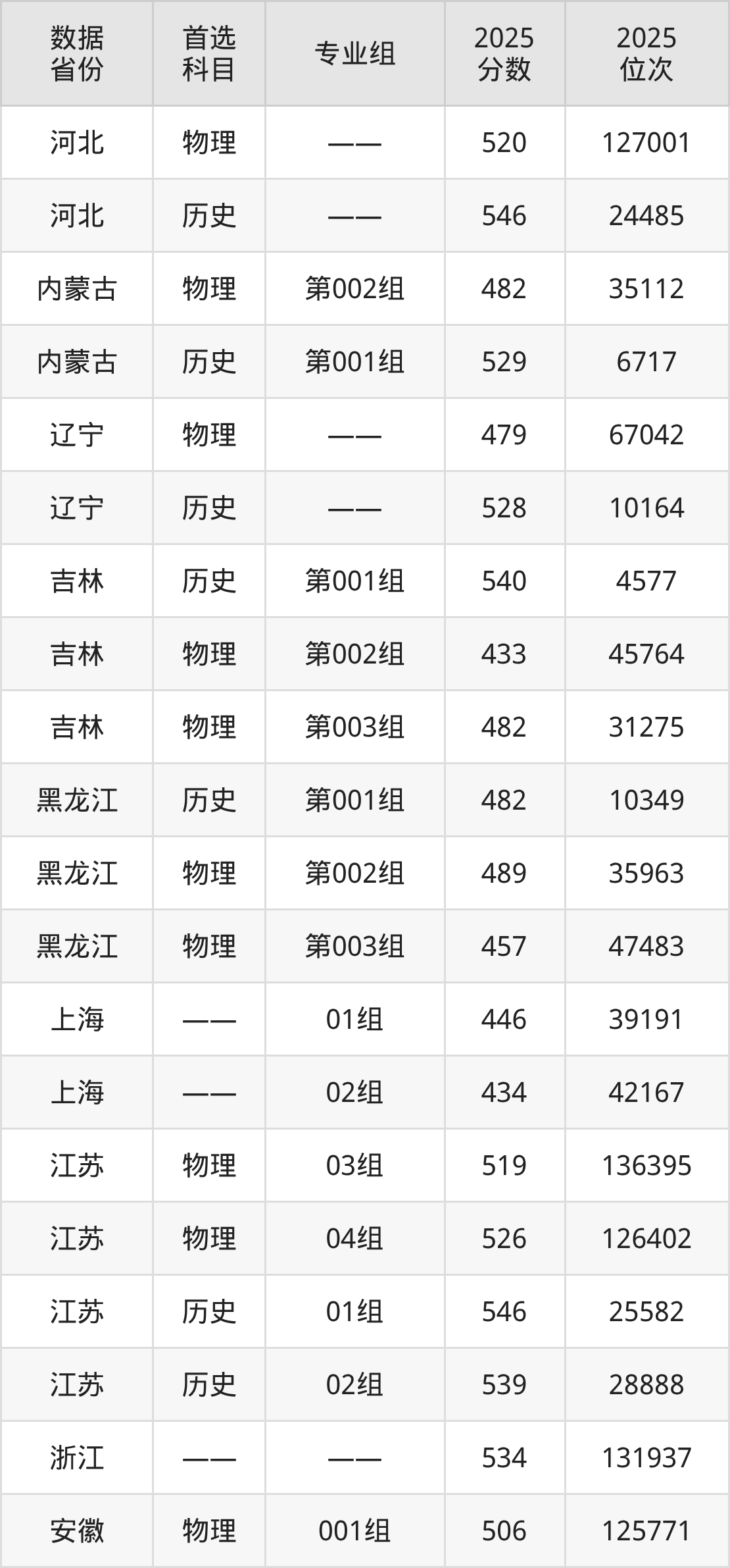 吉林:历史组540分、物理组433分;