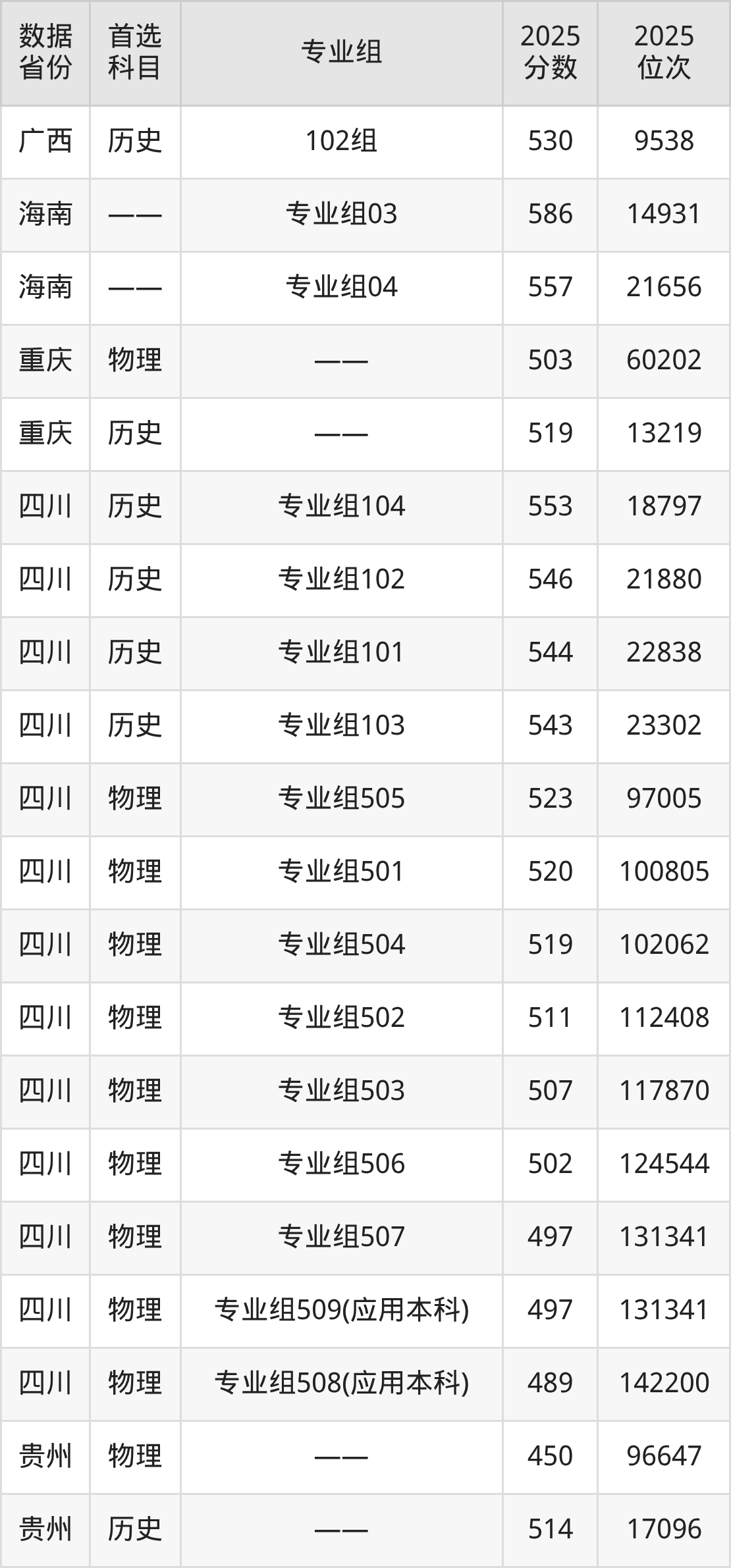 四川:历史组543分、物理组489分;