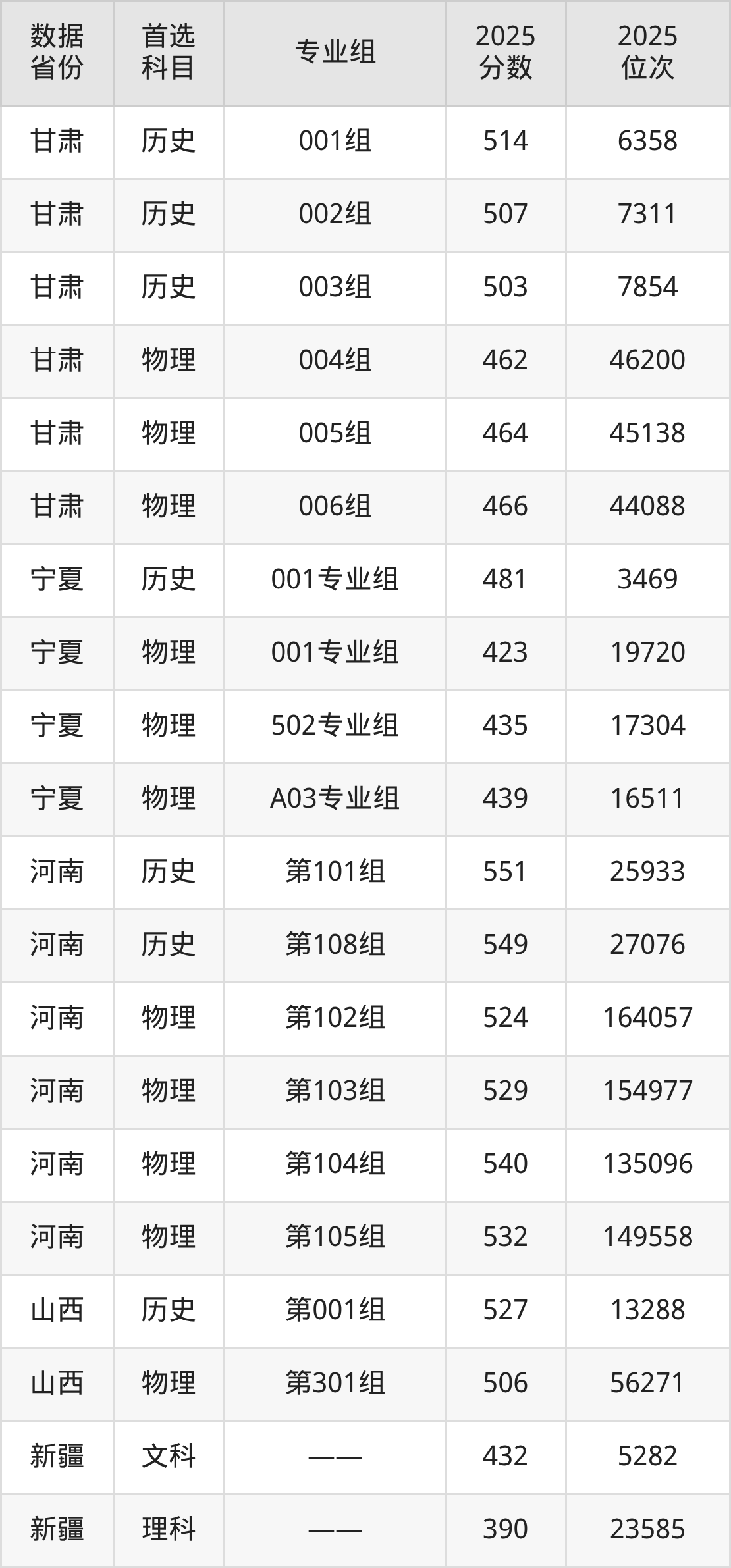 宁夏:历史组481分、物理组423分;