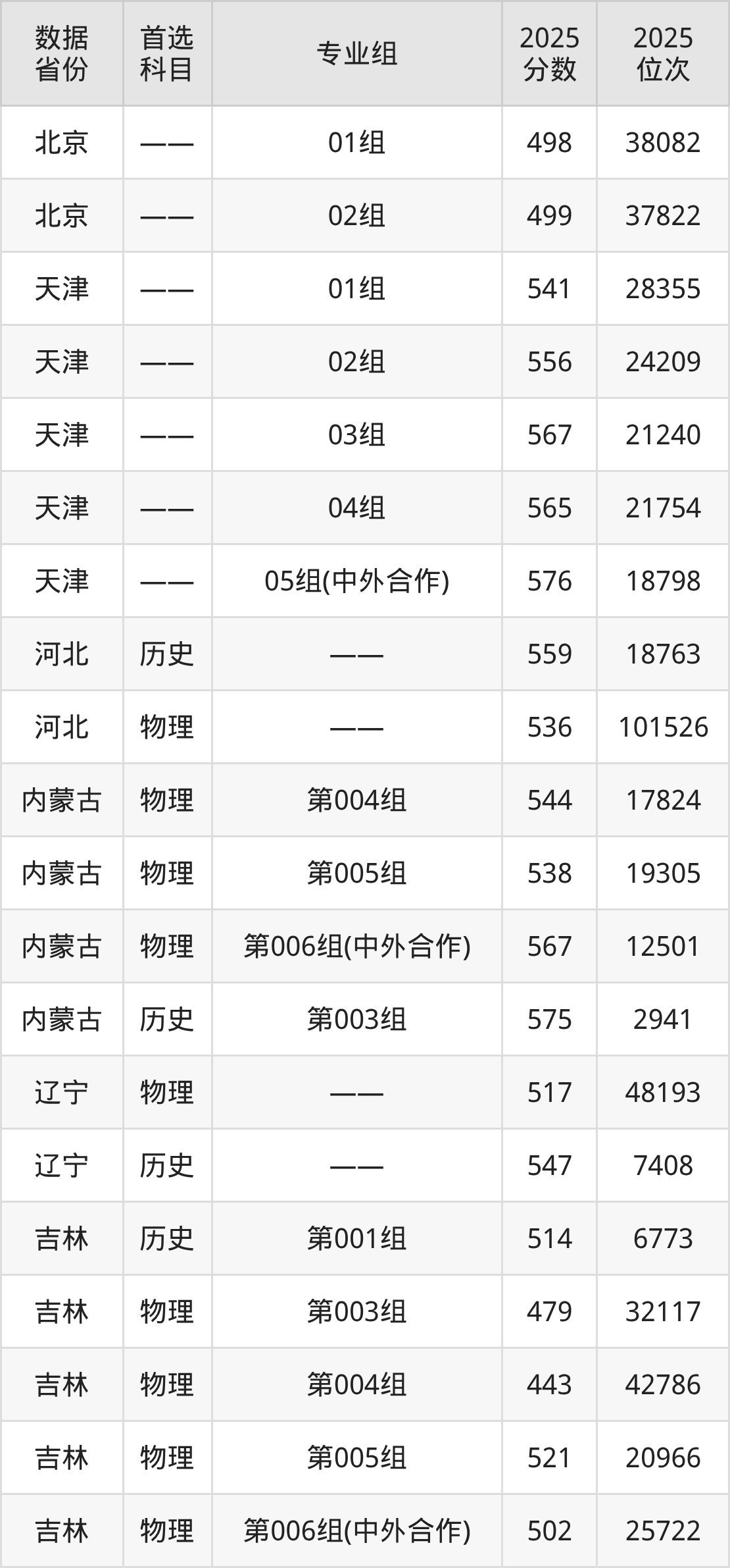 2025年东北石油大学全国录取分数线最低是382分,最高是576分,平均分在505分左右。在多数地区录取最低分均超过400分。低于400分能上的地区只有黑龙江、宁夏和吉林,高于平均值较多的是内蒙古、河北、河南和福建等地,均有专业组最低分在548分及以上。