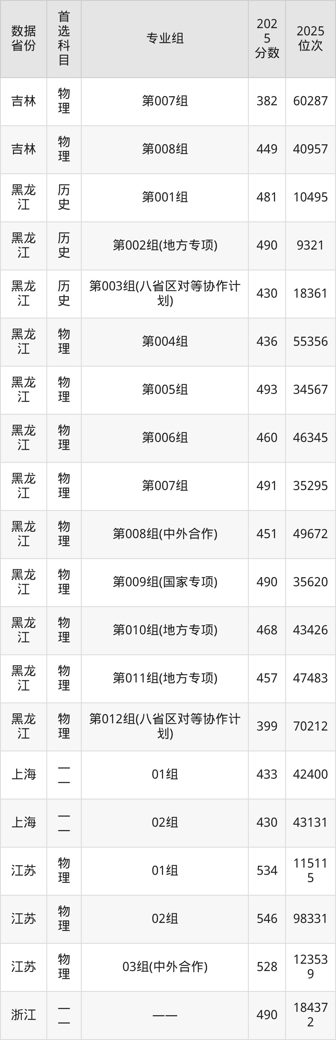 下面是东北石油大学各省最低分汇总,各专业组录取分数线可参考下方图片: