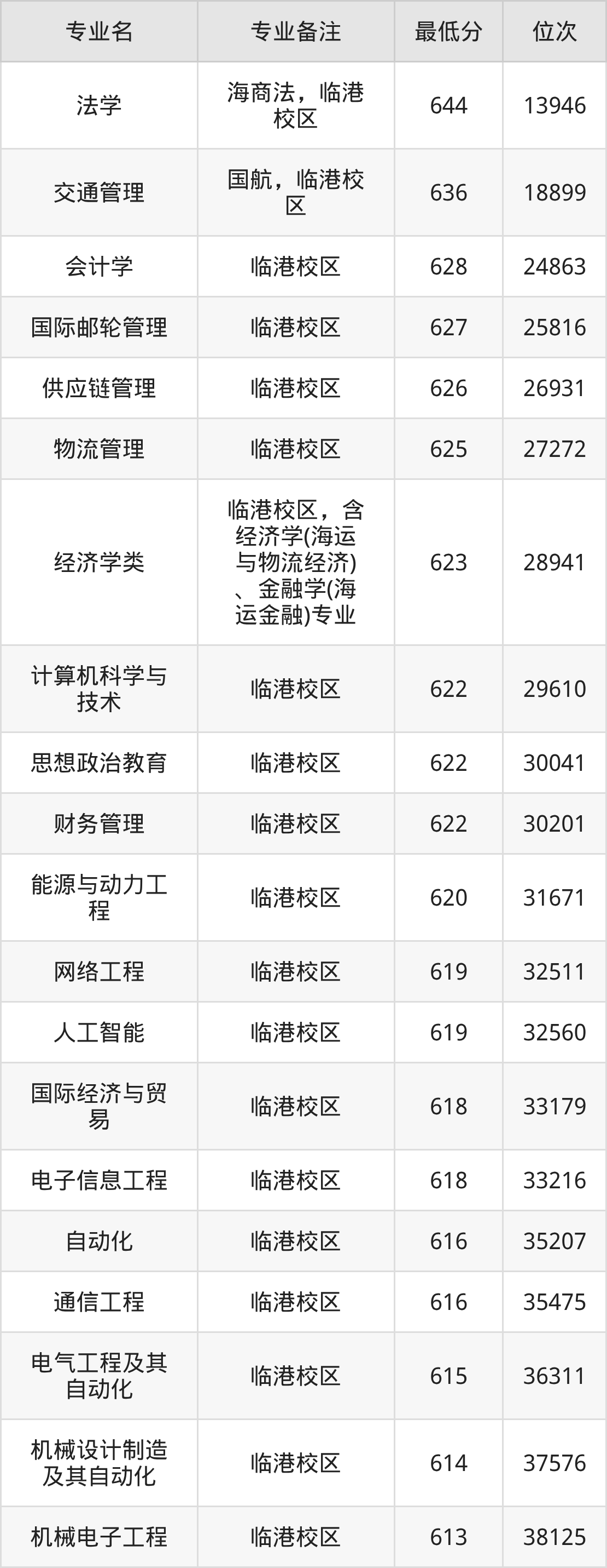 下面是上海海事大学各省最低分汇总,各专业组录取分数线可参考下方图片: