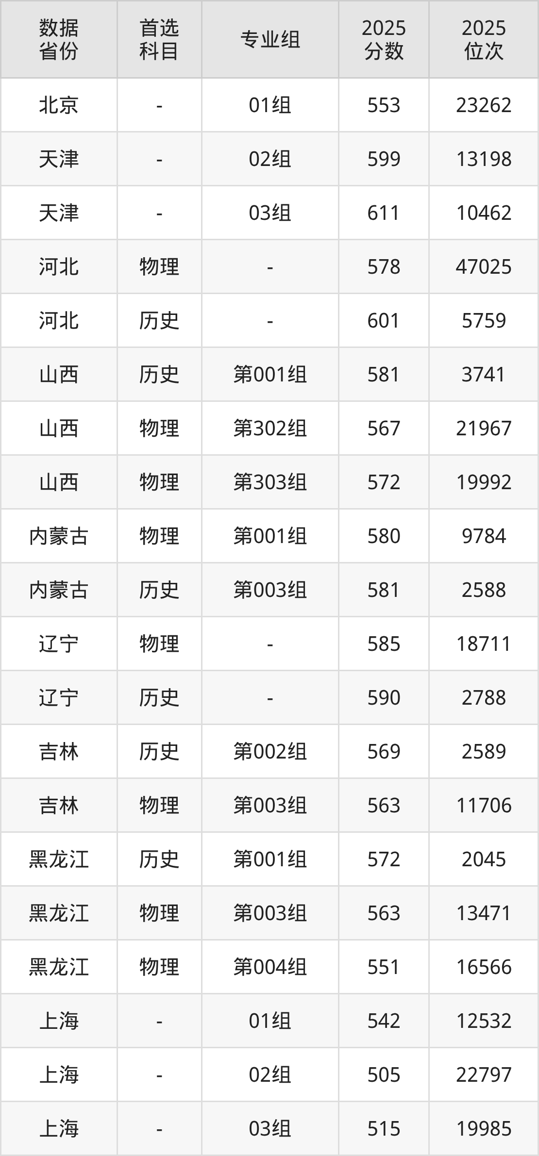 2025年上海海事大学全国录取分数线最低是452分,最高是641分,平均分在564分左右。在多数地区录取最低分均超过490分。低于490分能上的地区只有新疆和宁夏,高于平均值较多的是海南、河北、江苏和天津等地,均有专业组最低分在599分及以上。
