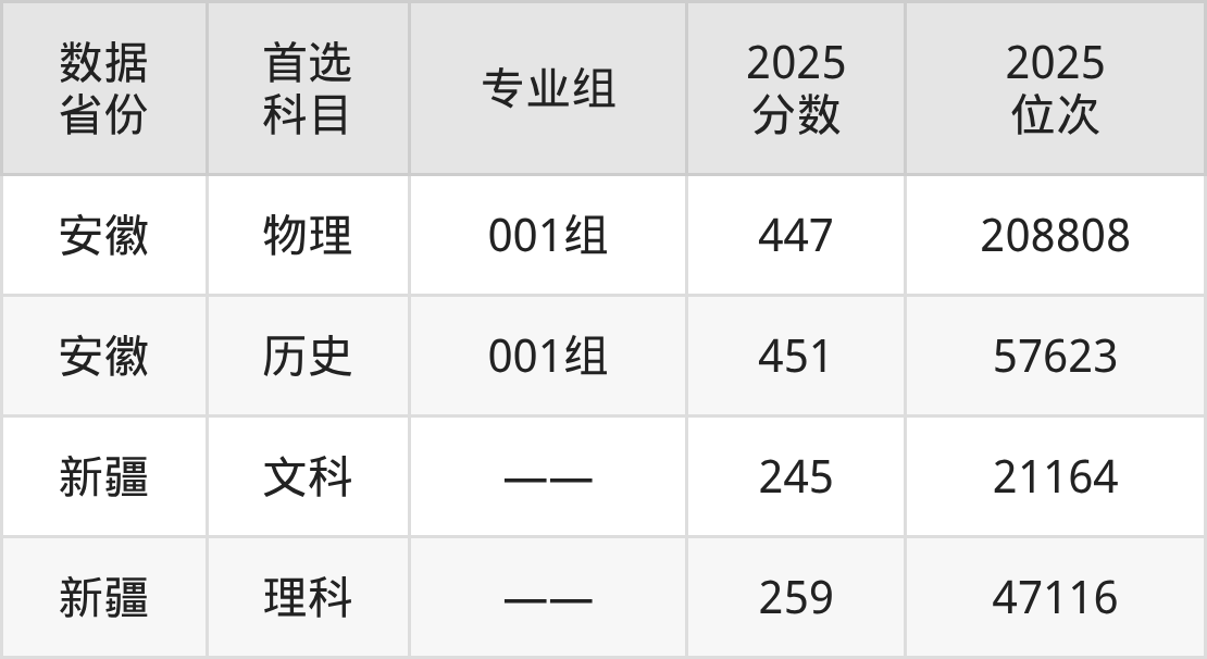 2025年安徽机电职业技术学院全国录取分数线是245分到451分之间,其中在安徽省录取最低分:物理组447分、历史组451分。参考新疆招录数据,各专业分数线是:机械设计与制造284分(理科)、旅游管理259分(理科)、旅游管理251分(文科)等。