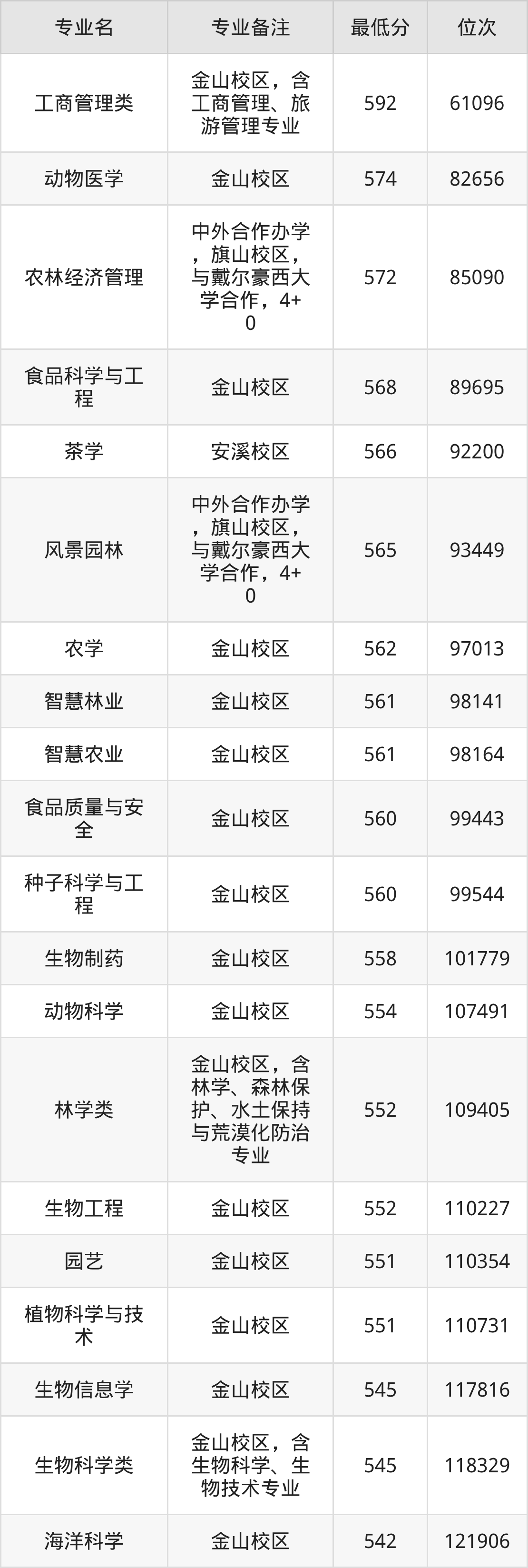 | 历史 | 农林经济管理 | 在金山校区报 到 | 24 |