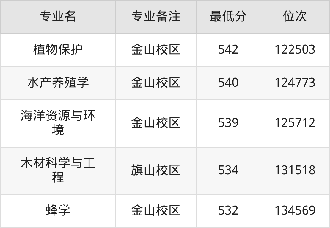 二、福建农林大学各专业最低分