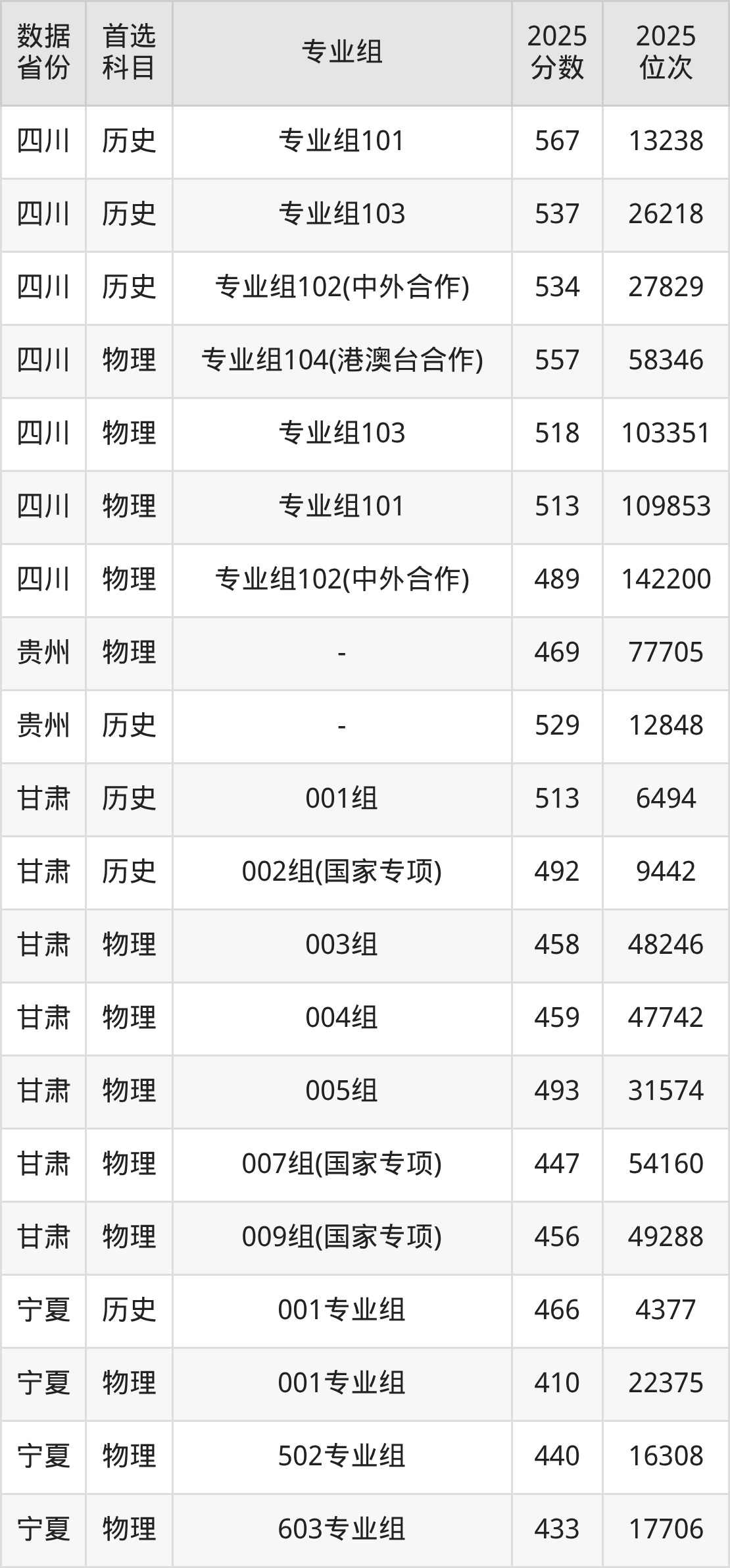 四川:历史组534分、物理组489分;
