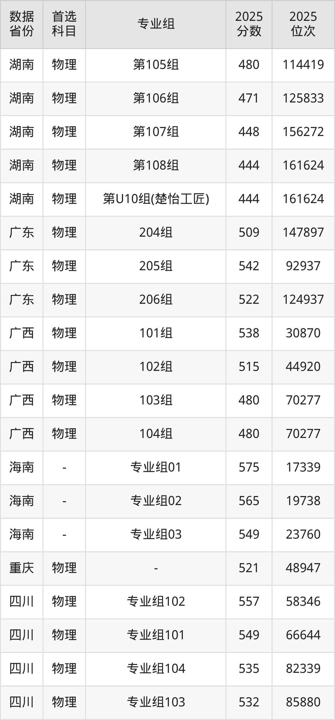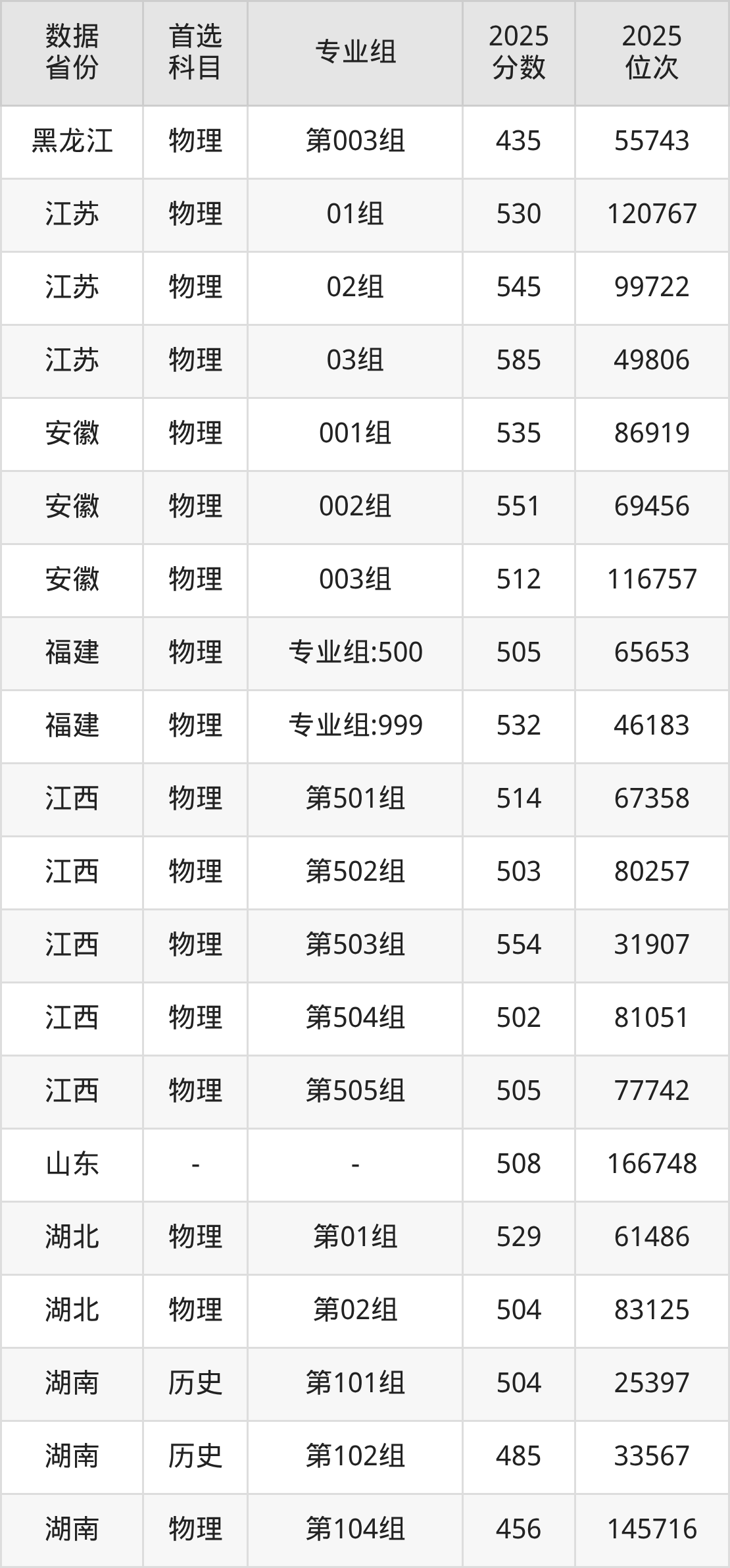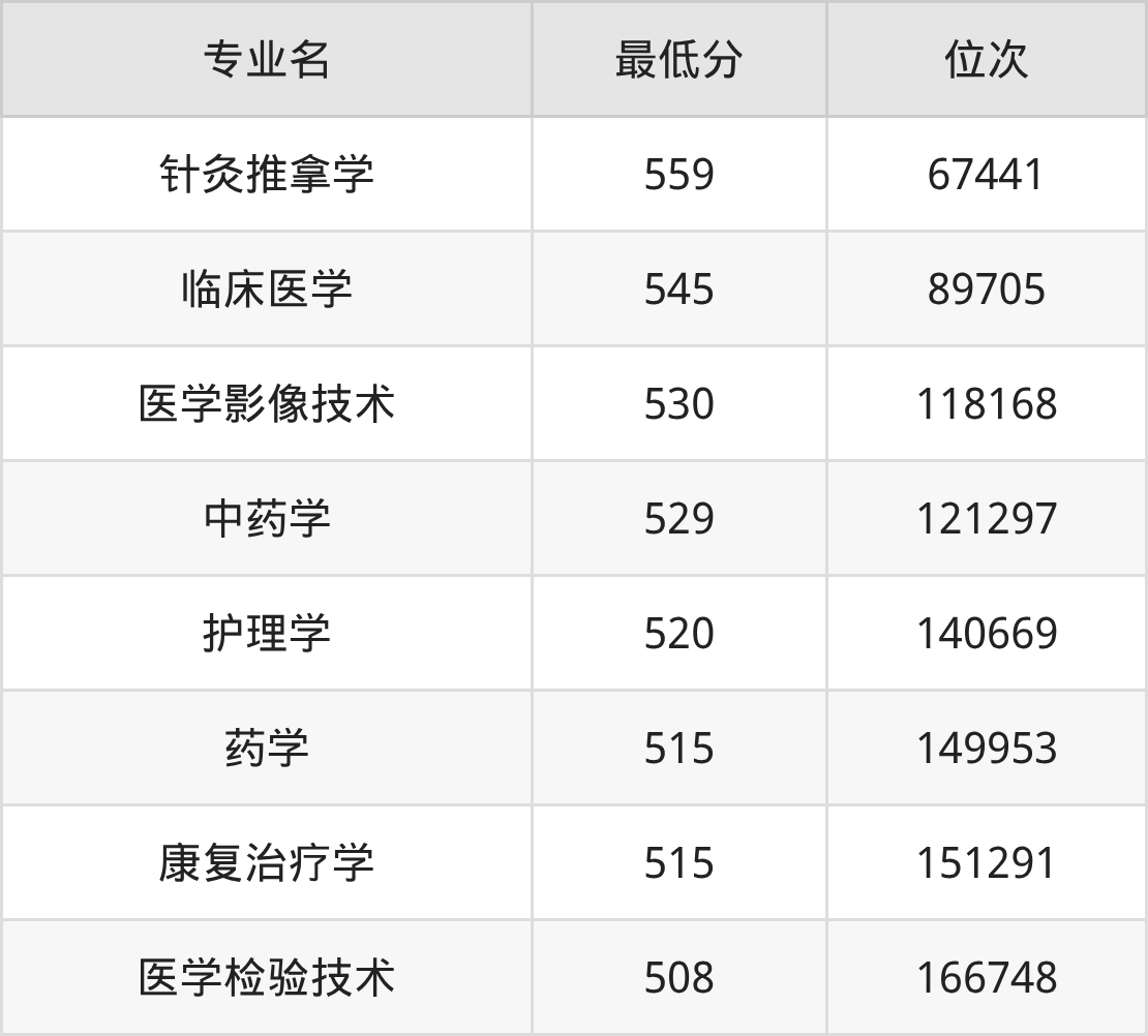 下面是湖南医药学院各省最低分汇总,各专业组录取分数线可参考下方图片: