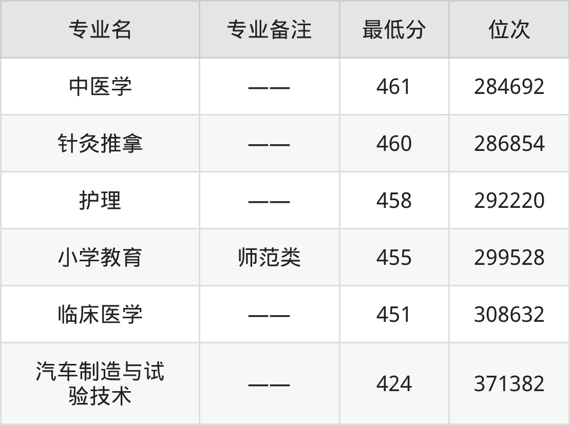 1、中医学:461分、位次284692名;