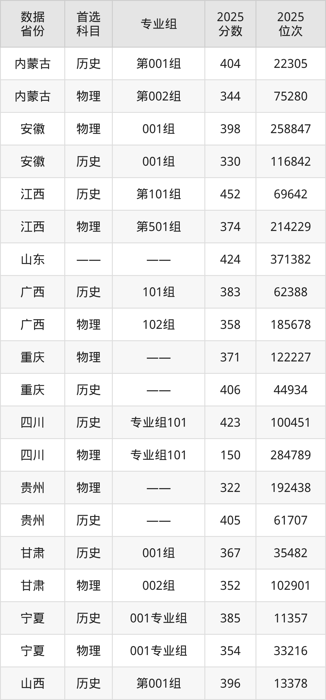四川:历史组423分、物理组150分;