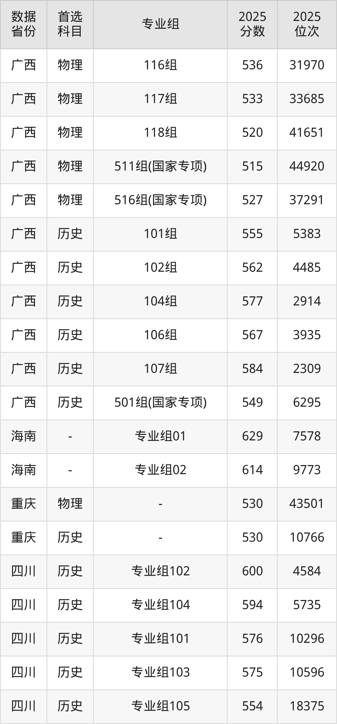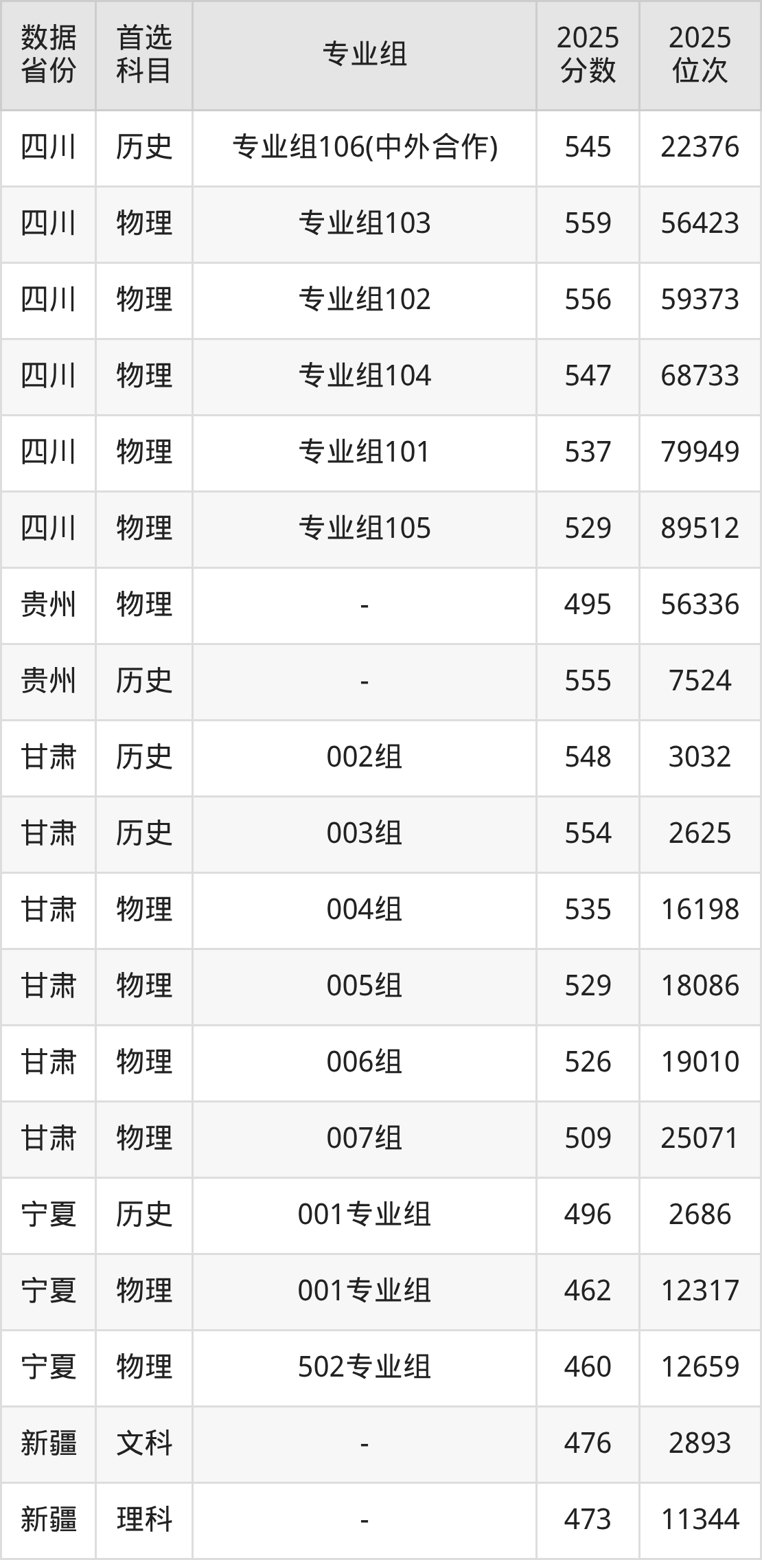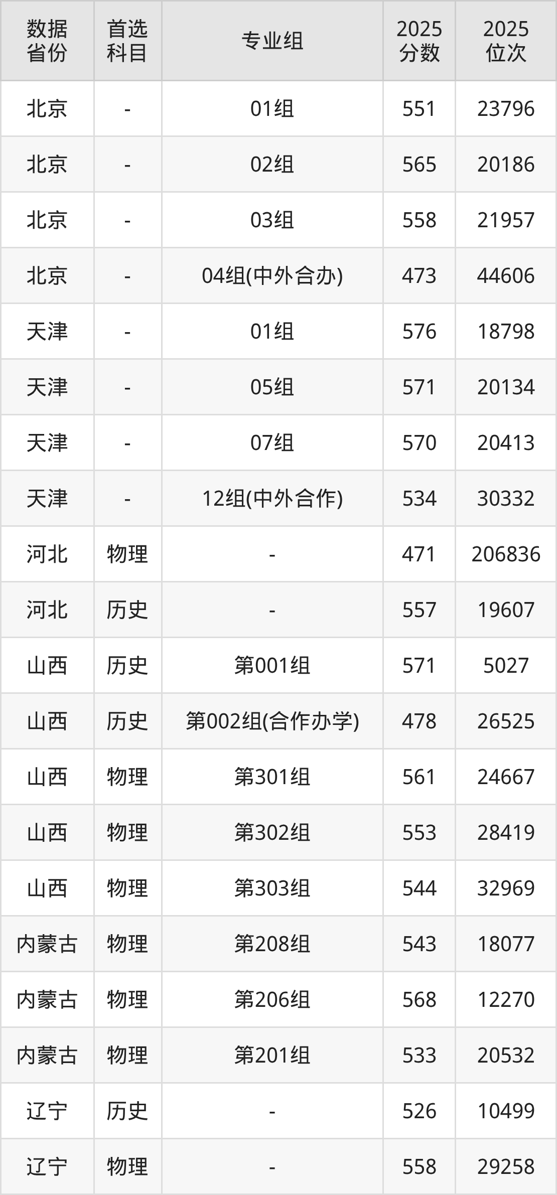 2025年浙江师范大学全国录取分数线最低是406分,最高是629分,平均分在547分左右。在多数地区录取最低分均超过470分。低于470分能上的地区只有宁夏和黑龙江,高于平均值较多的是海南、浙江、福建和江苏等地,均有专业组最低分在561分及以上。