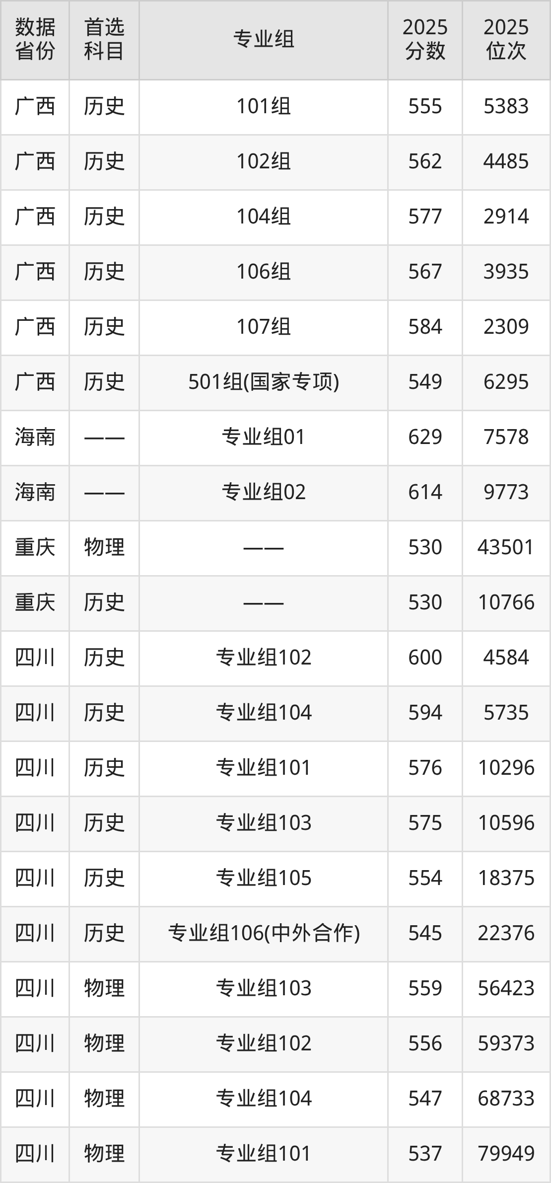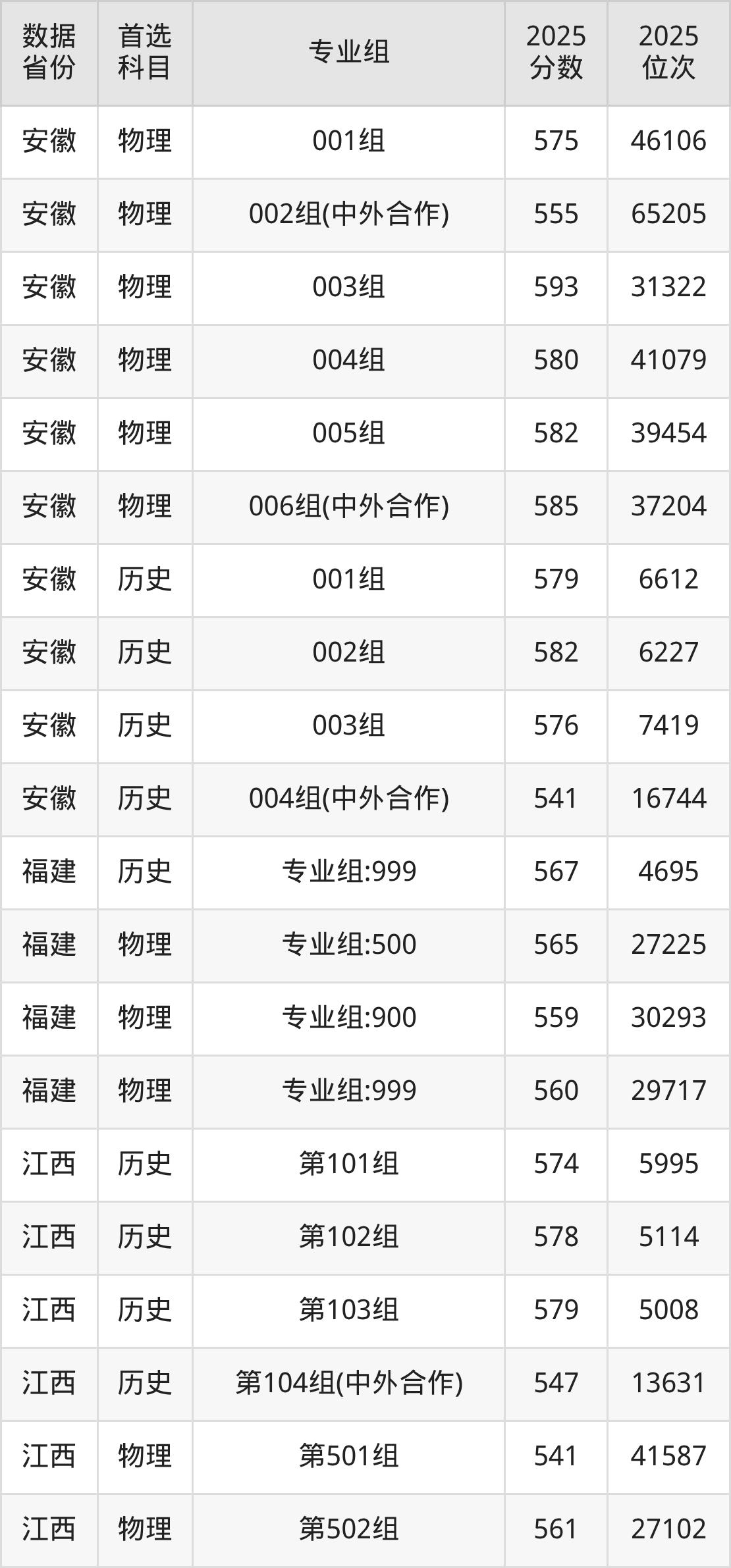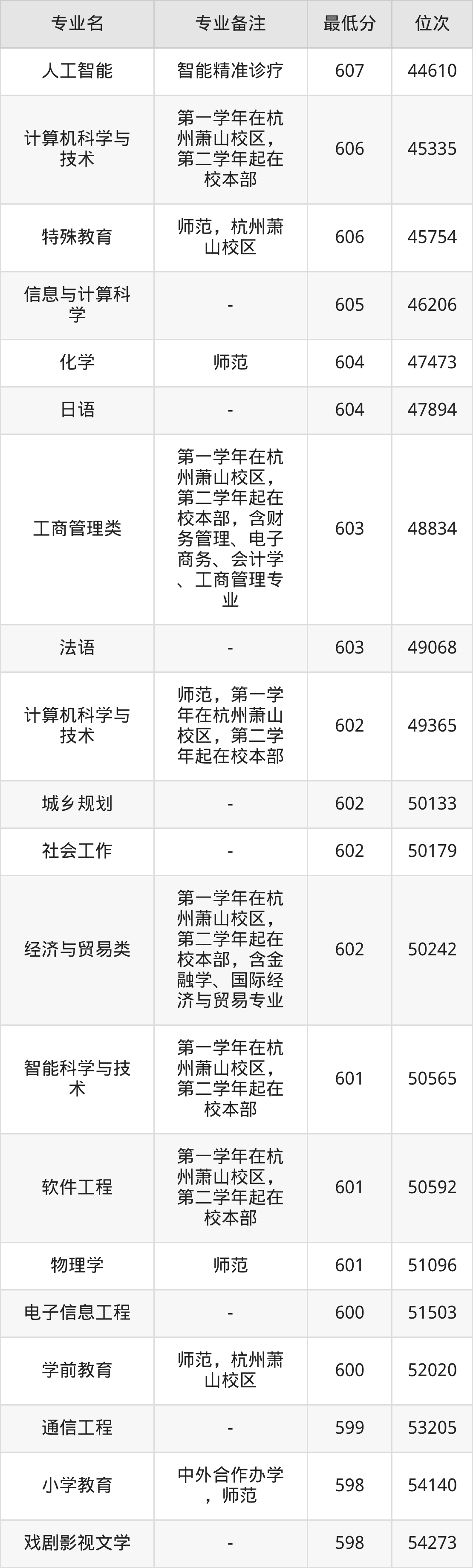 下面是浙江师范大学各省最低分汇总,各专业组录取分数线可参考下方图片: