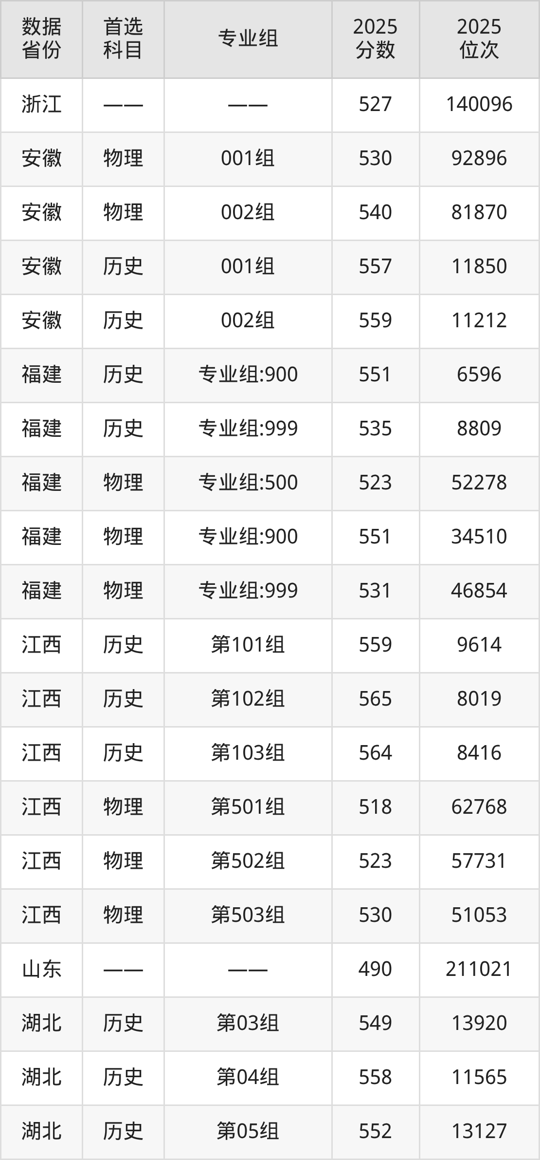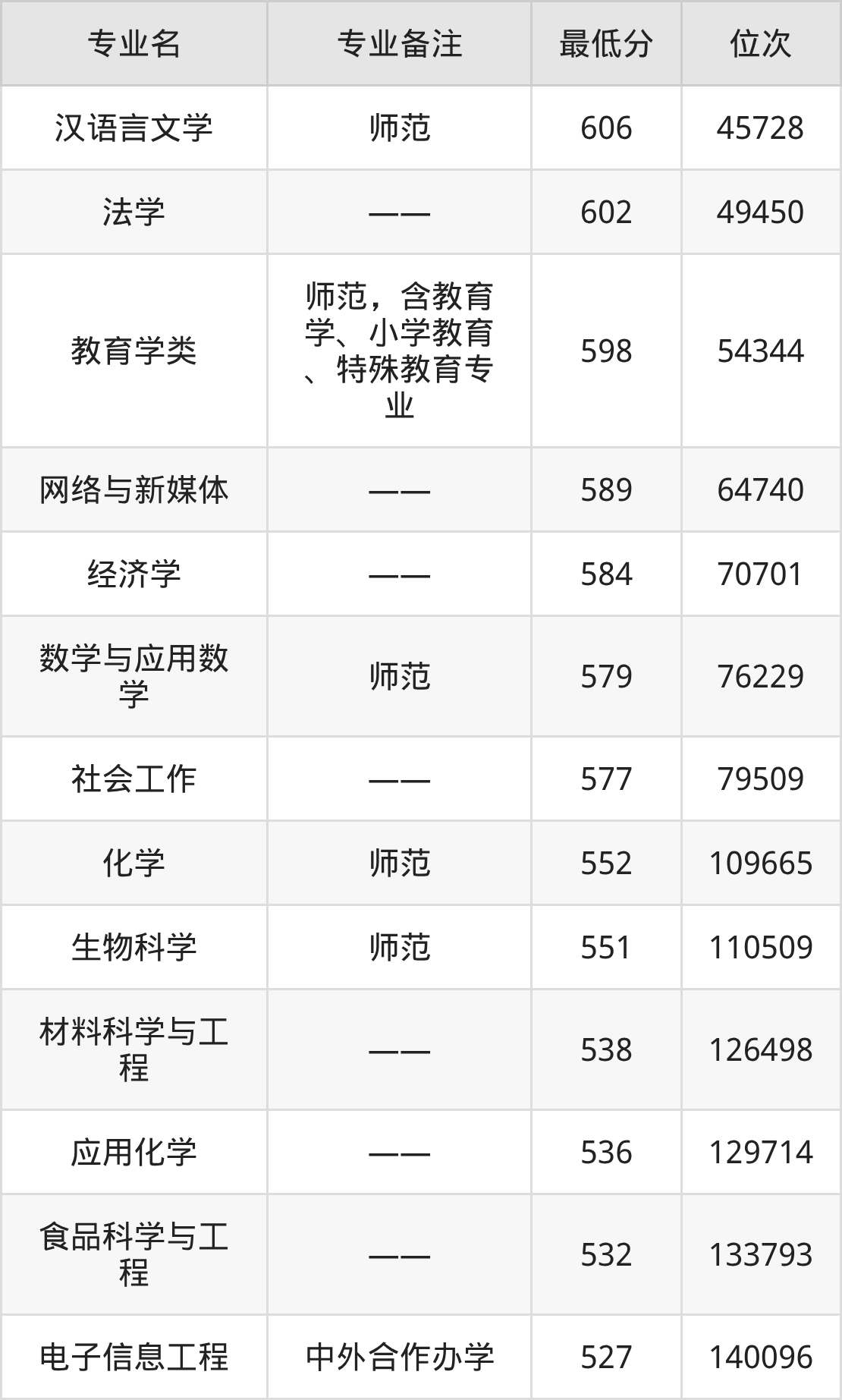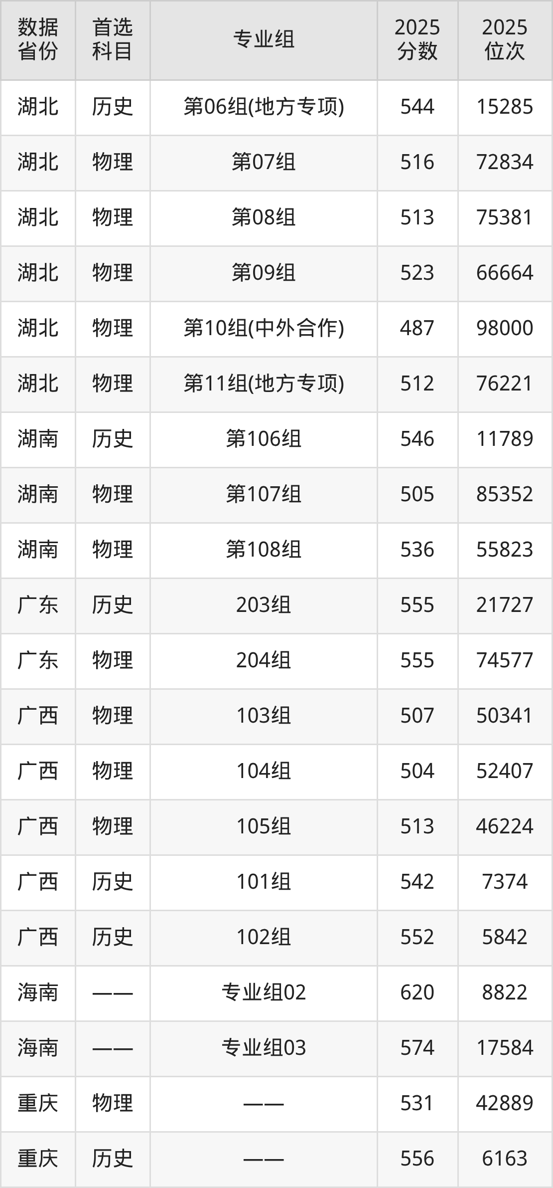 下面是湖北师范大学各省最低分汇总,各专业组录取分数线可参考下方图片:
