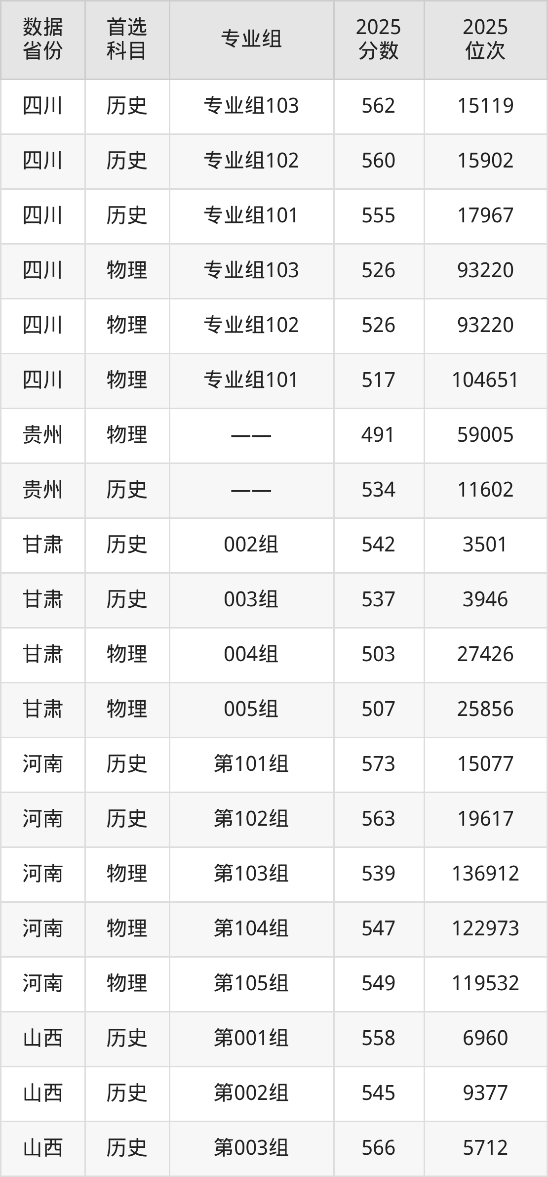 | 历史 | 商务英语 | 地方专项计划 | 7 |