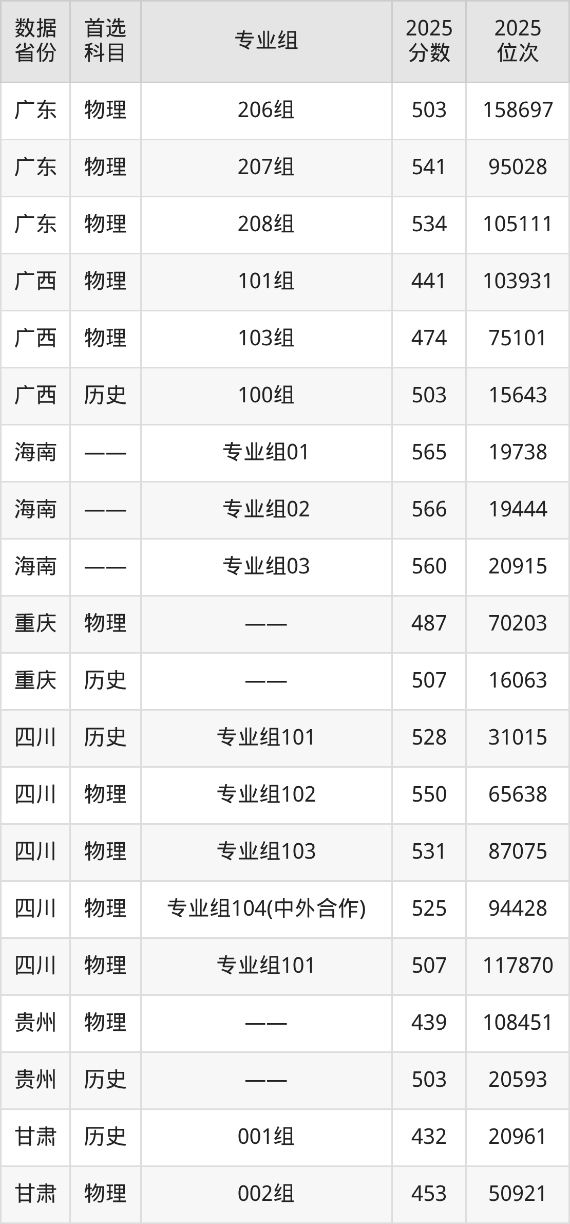 下面是郑州航空工业管理学院各省最低分汇总,各专业组录取分数线可参考下方图片: