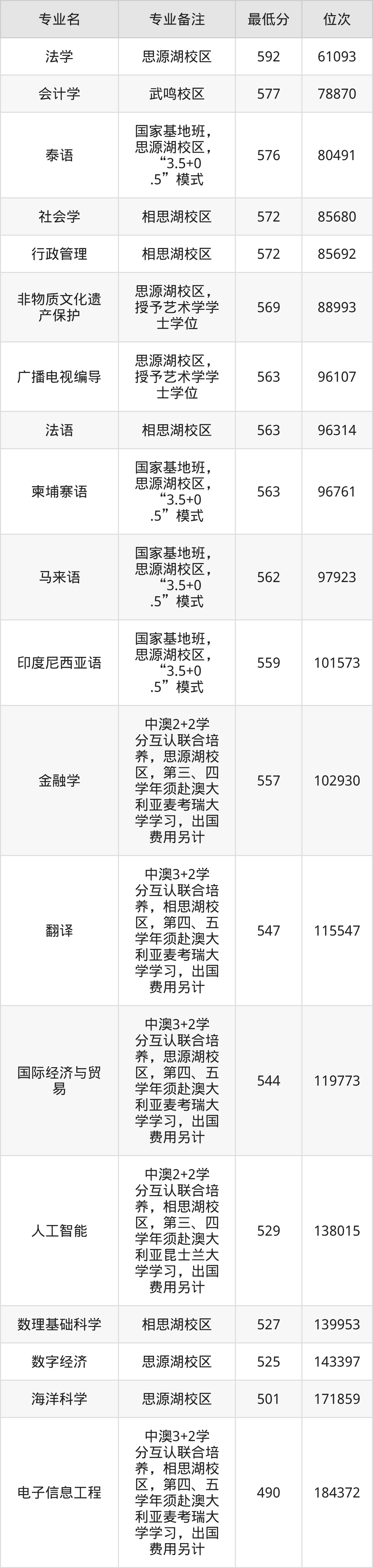 1、法学(思源湖校区):592分、位次61093名;